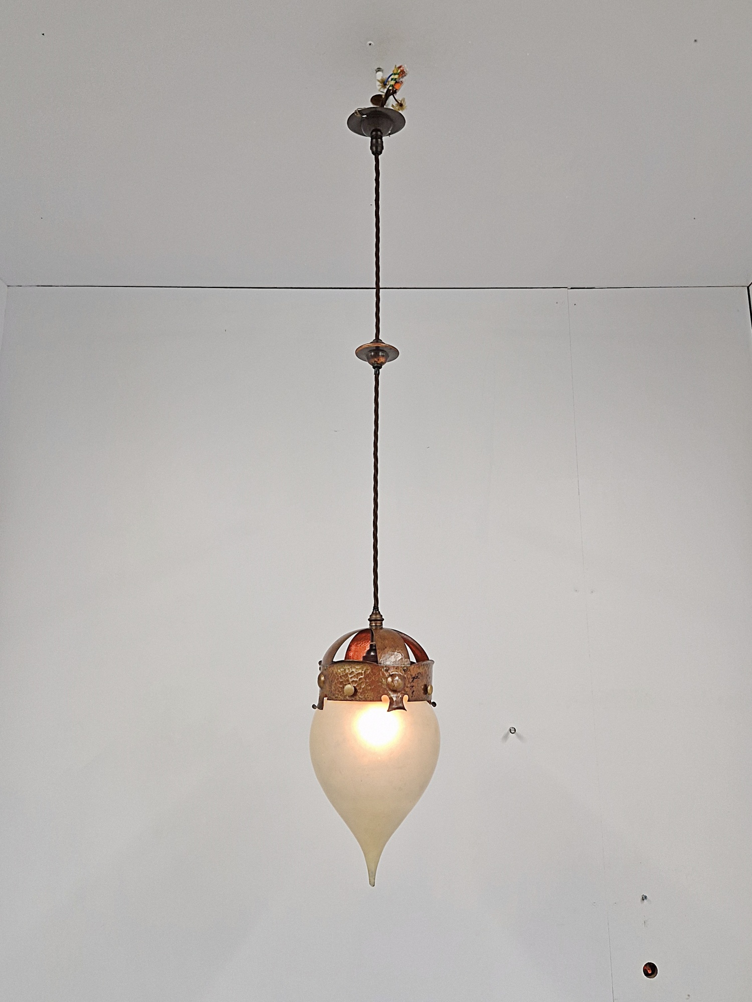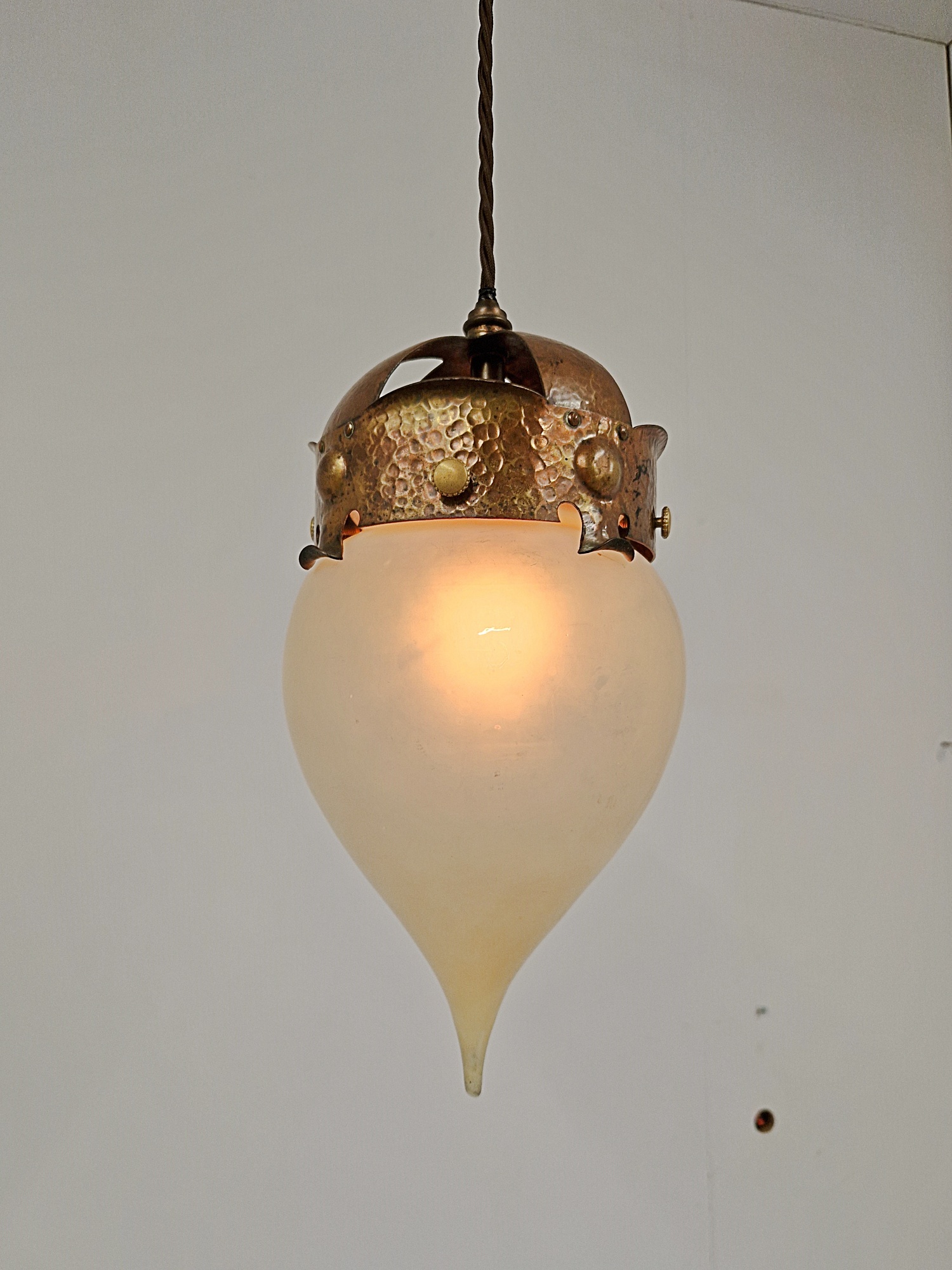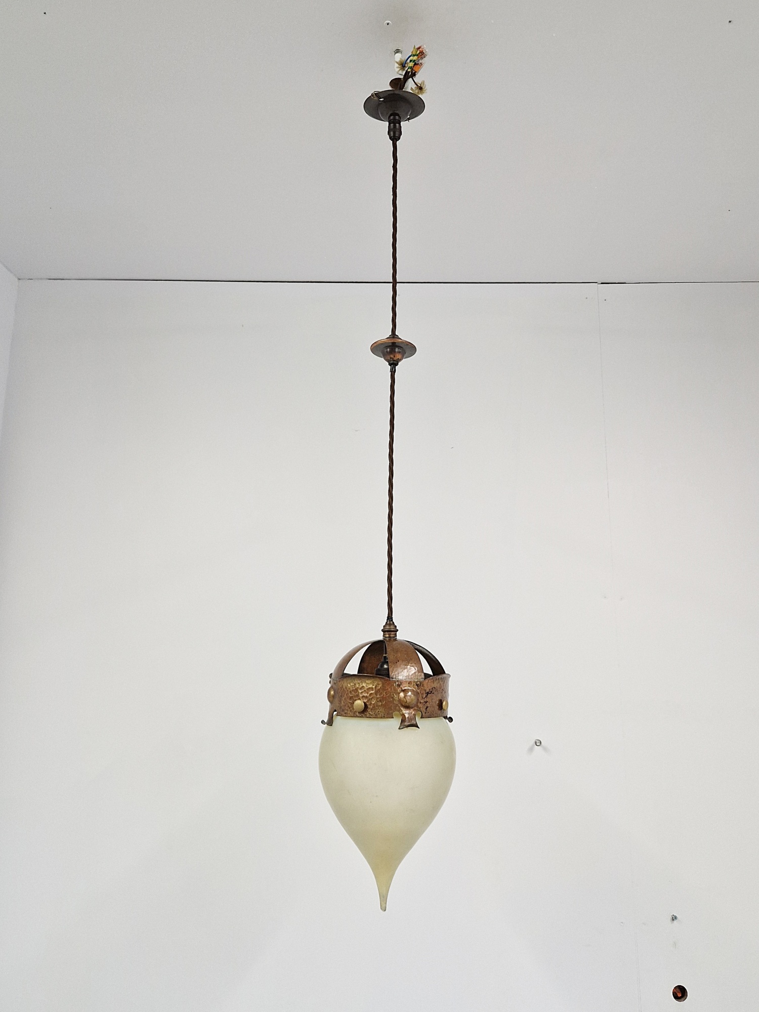 2 Large Arts & Crafts Hall Pendants | With Glass Point | England c.1900