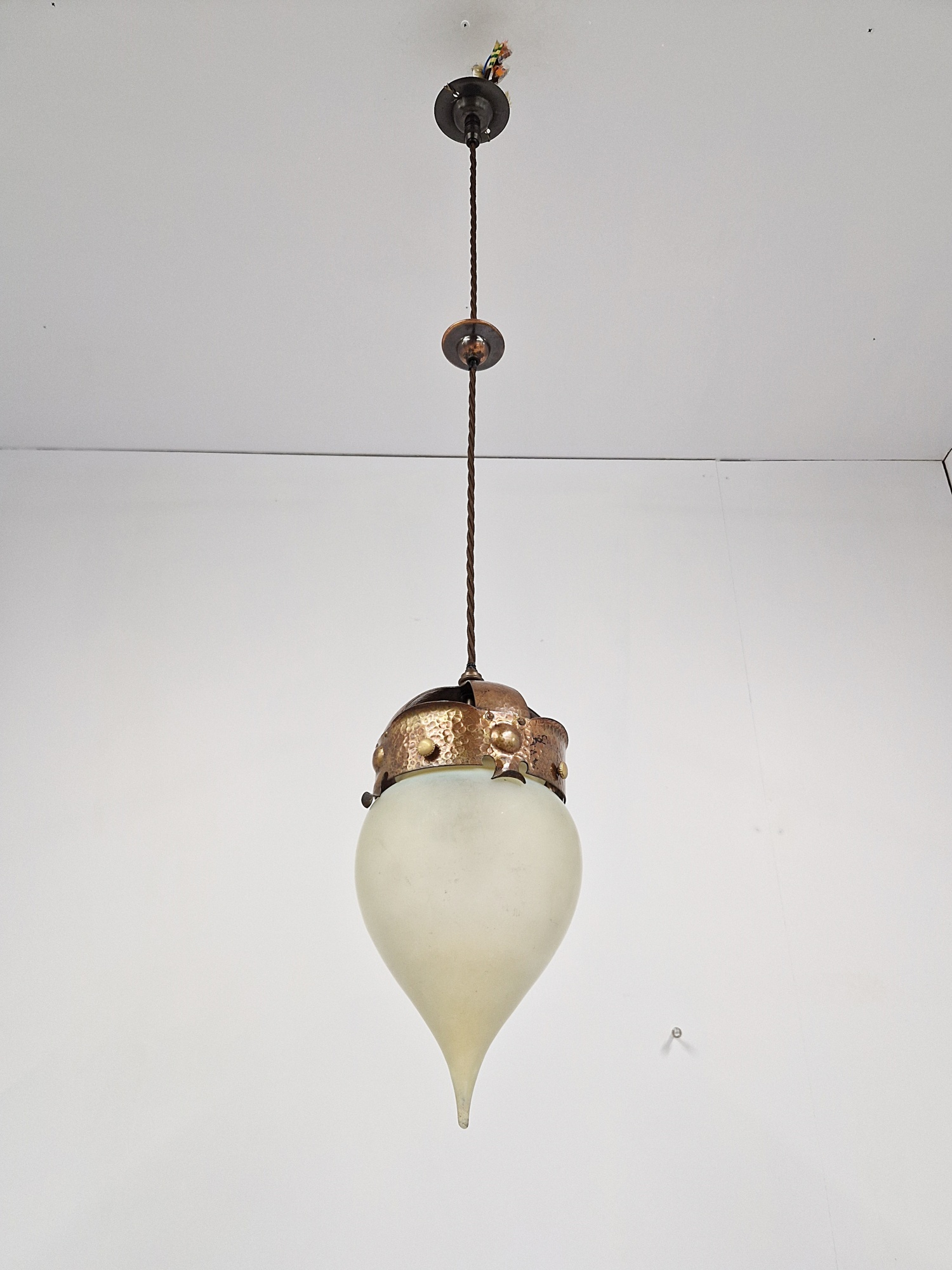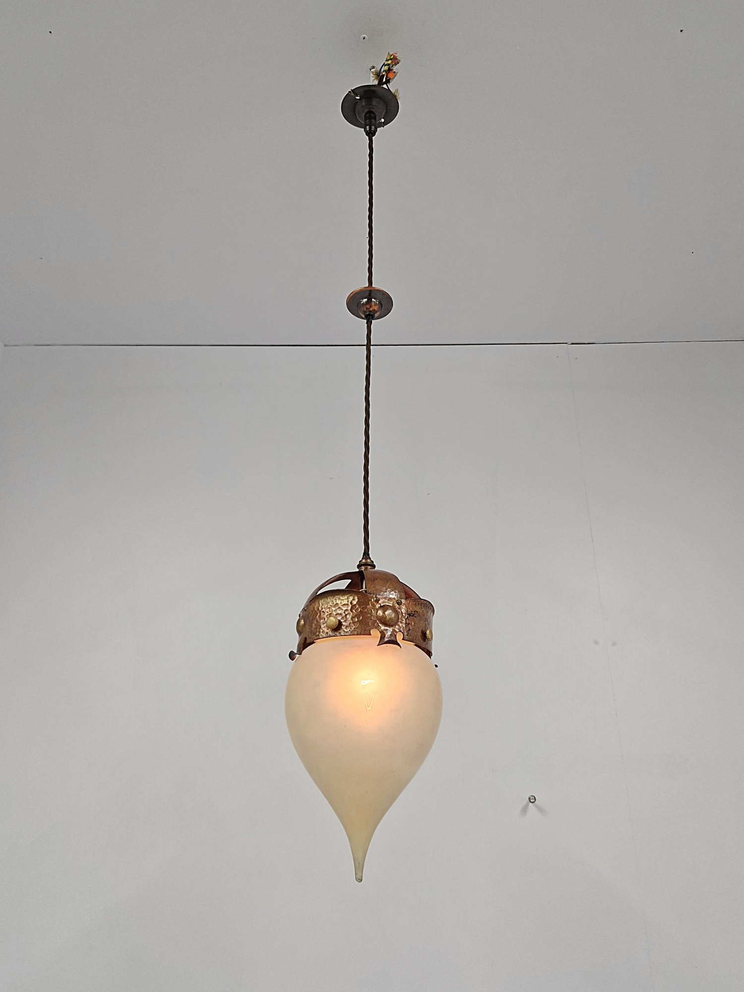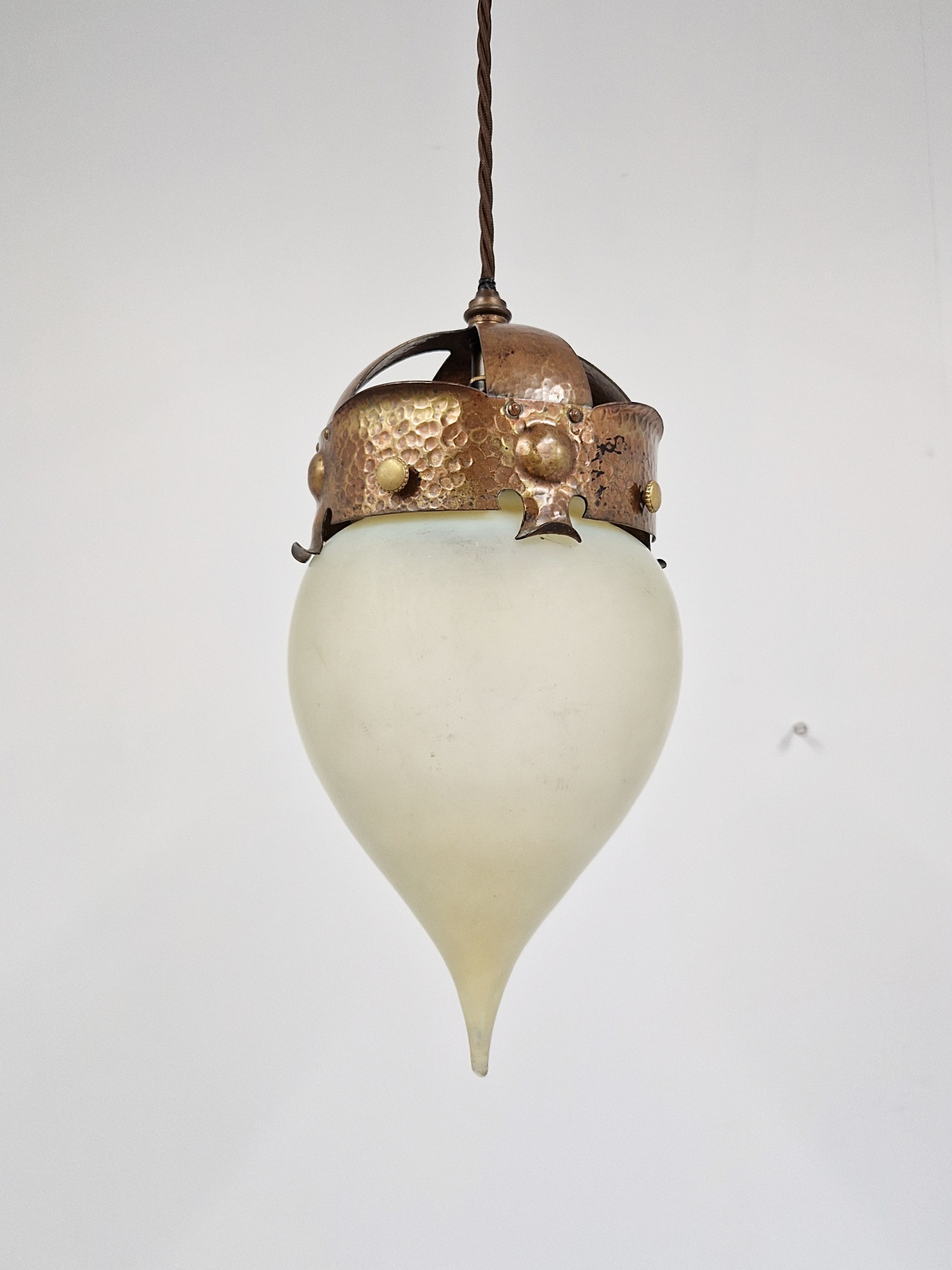 2 Large Arts & Crafts Hall Pendants | With Glass Point | England c.1900