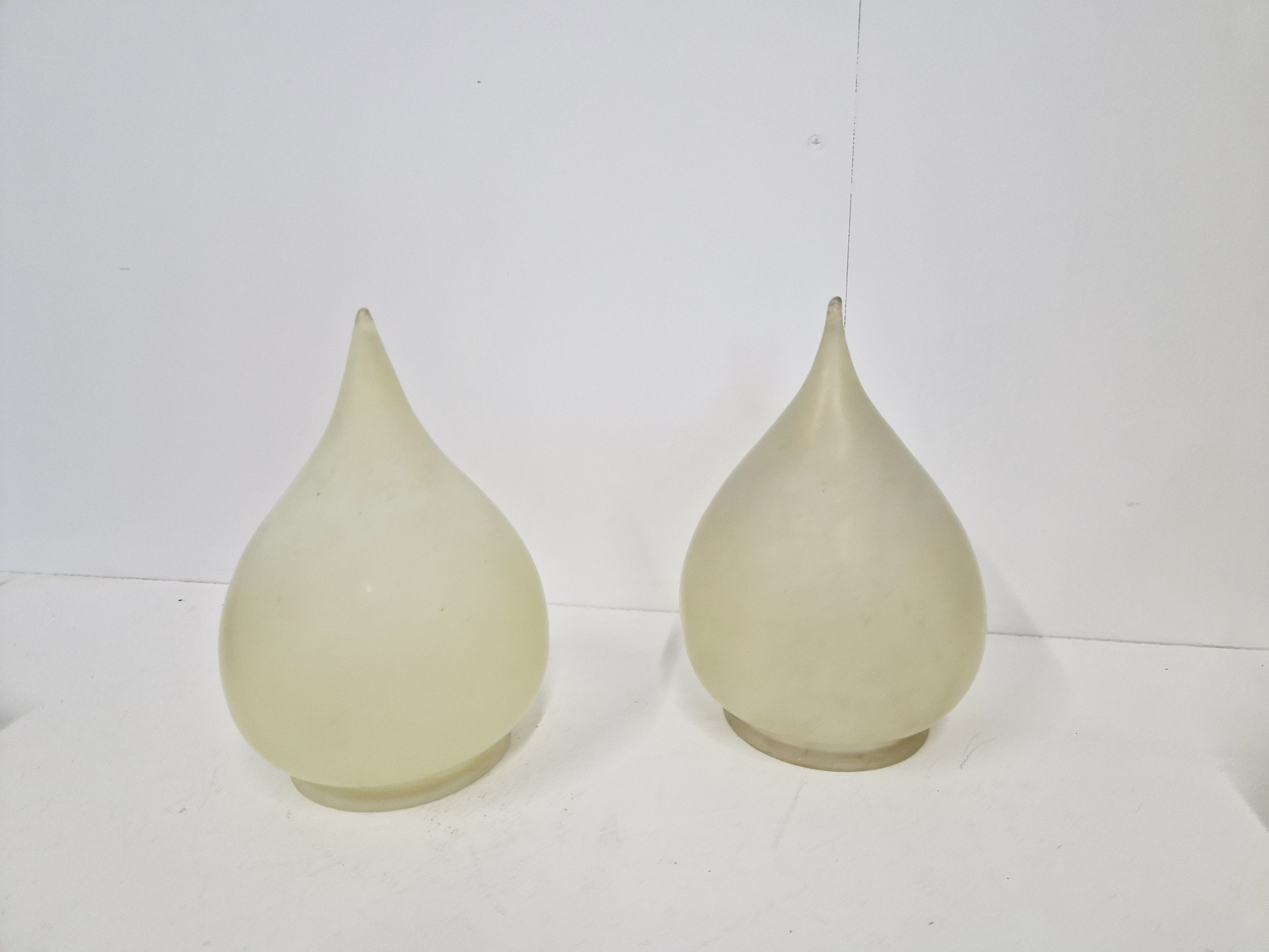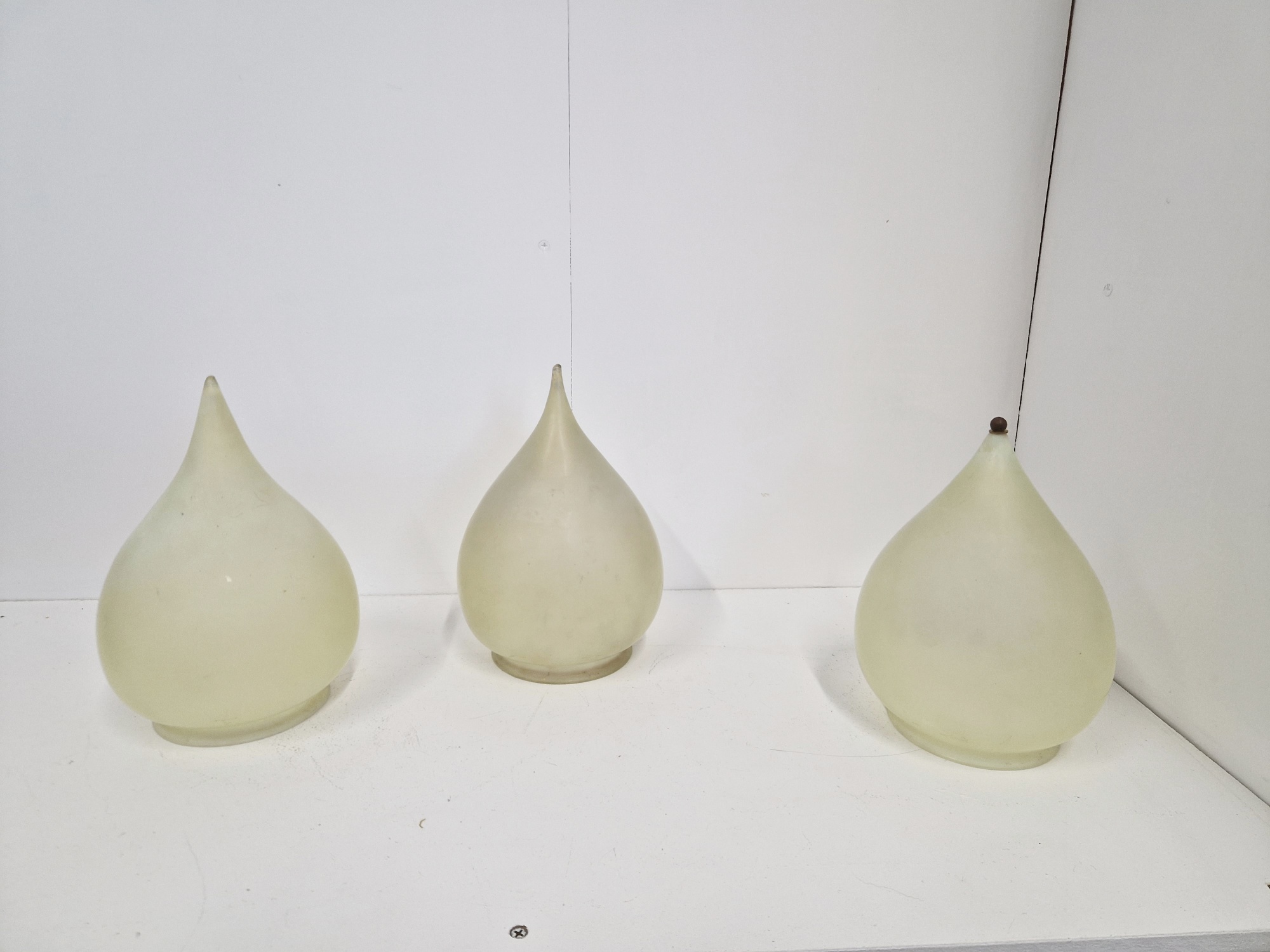 N.B: Available to buy as a pair (shades maintain their glass point) and single (shade missing glass point and replaced with brass finial, see final photos)