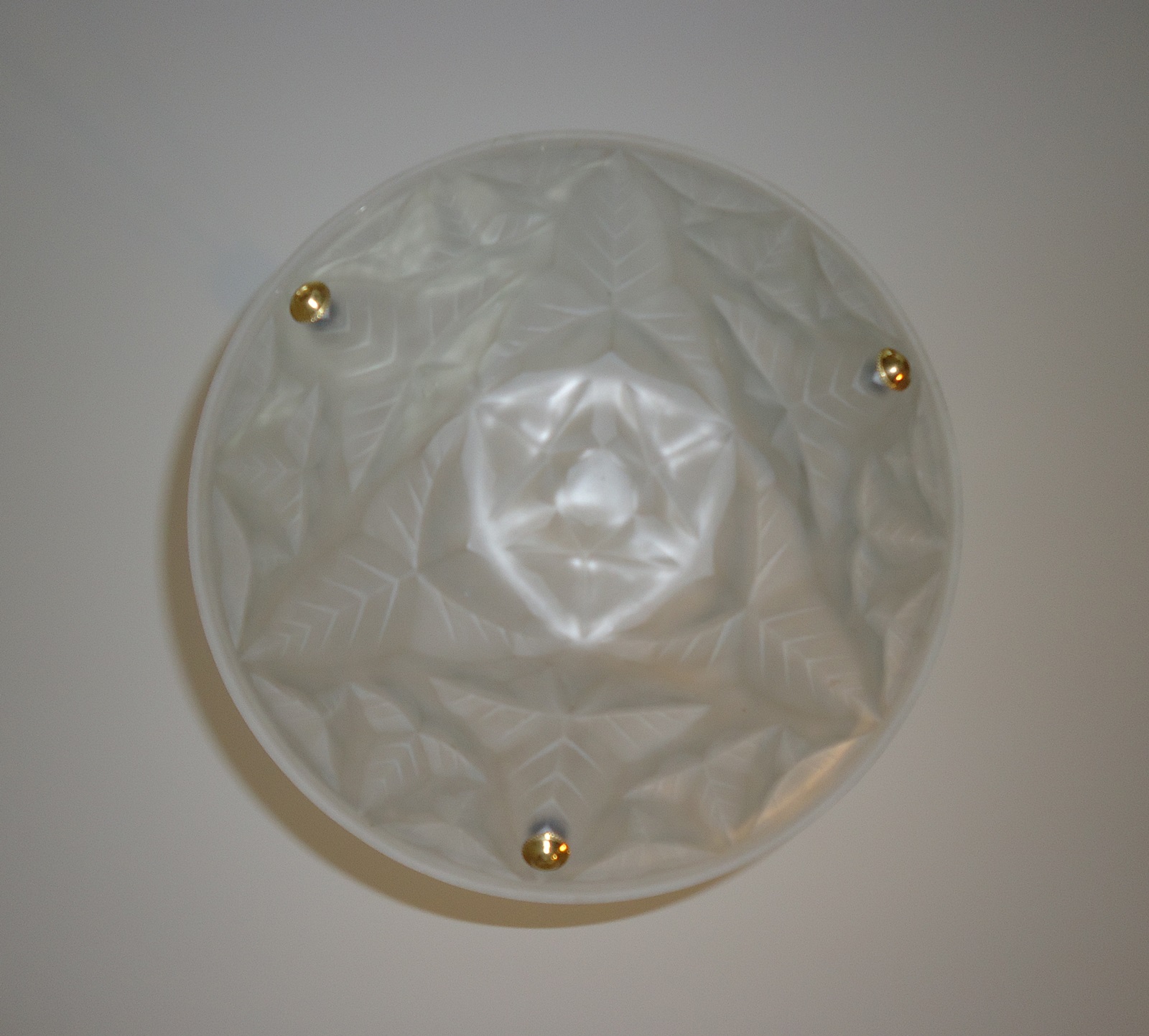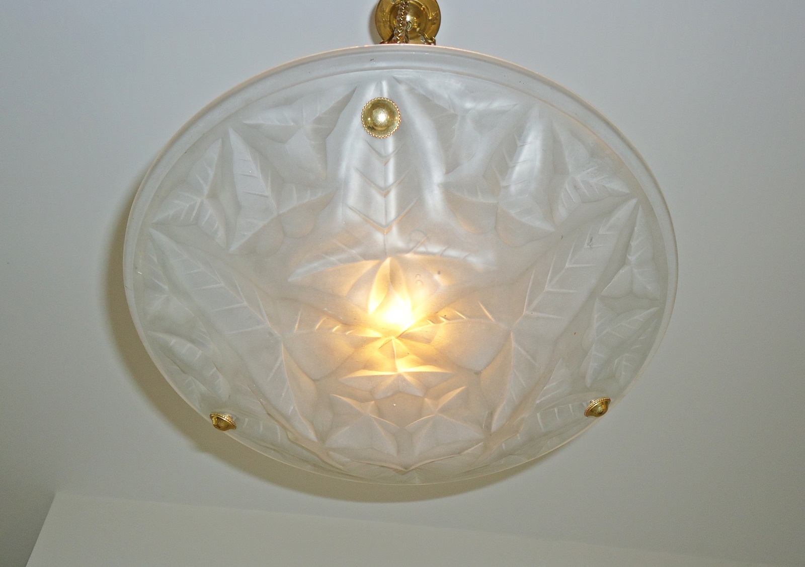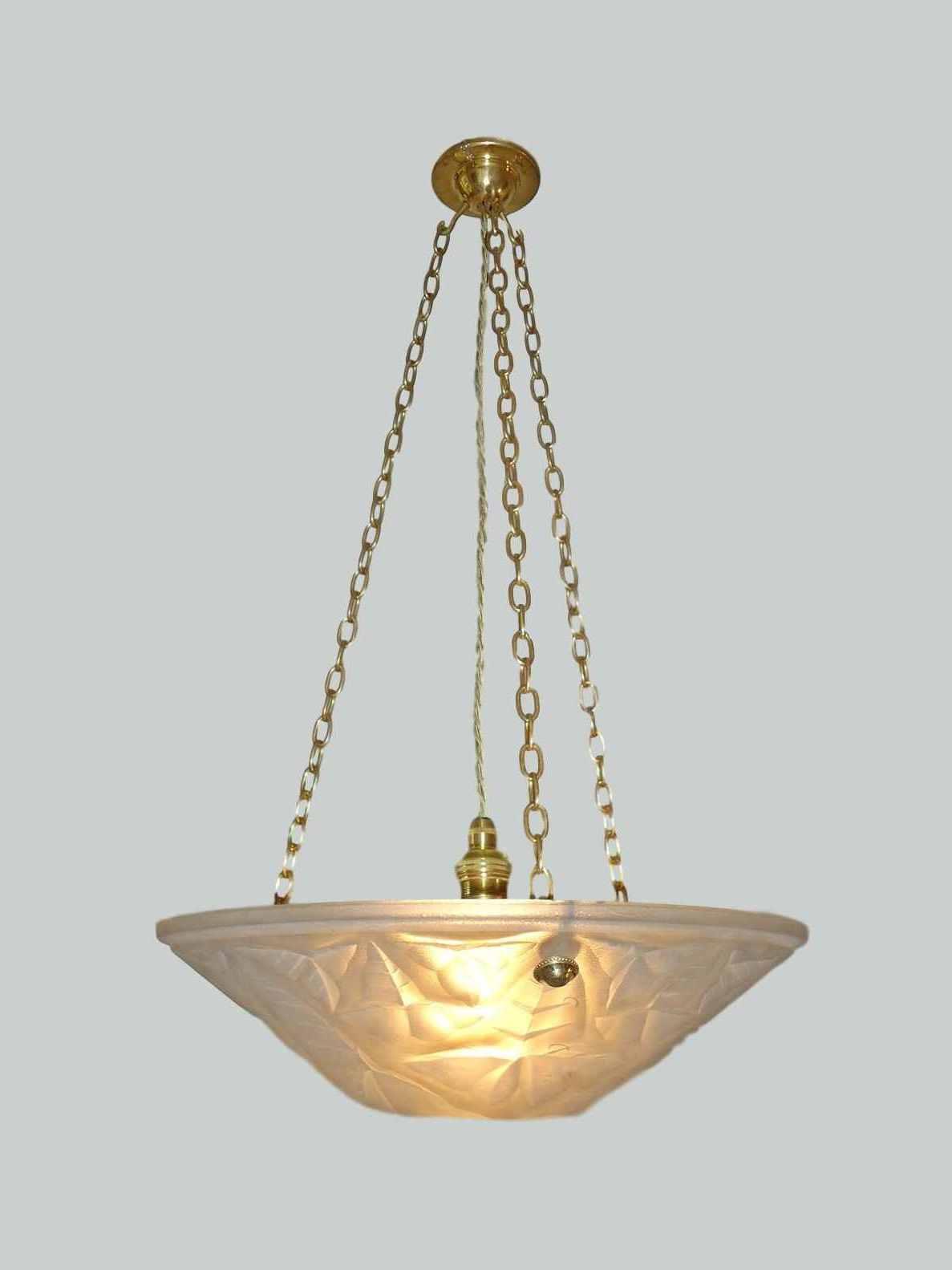 An attractive moulded glass hanging lampshade, the frosted glass designed with stylised Ivy-type leaves. France c1930