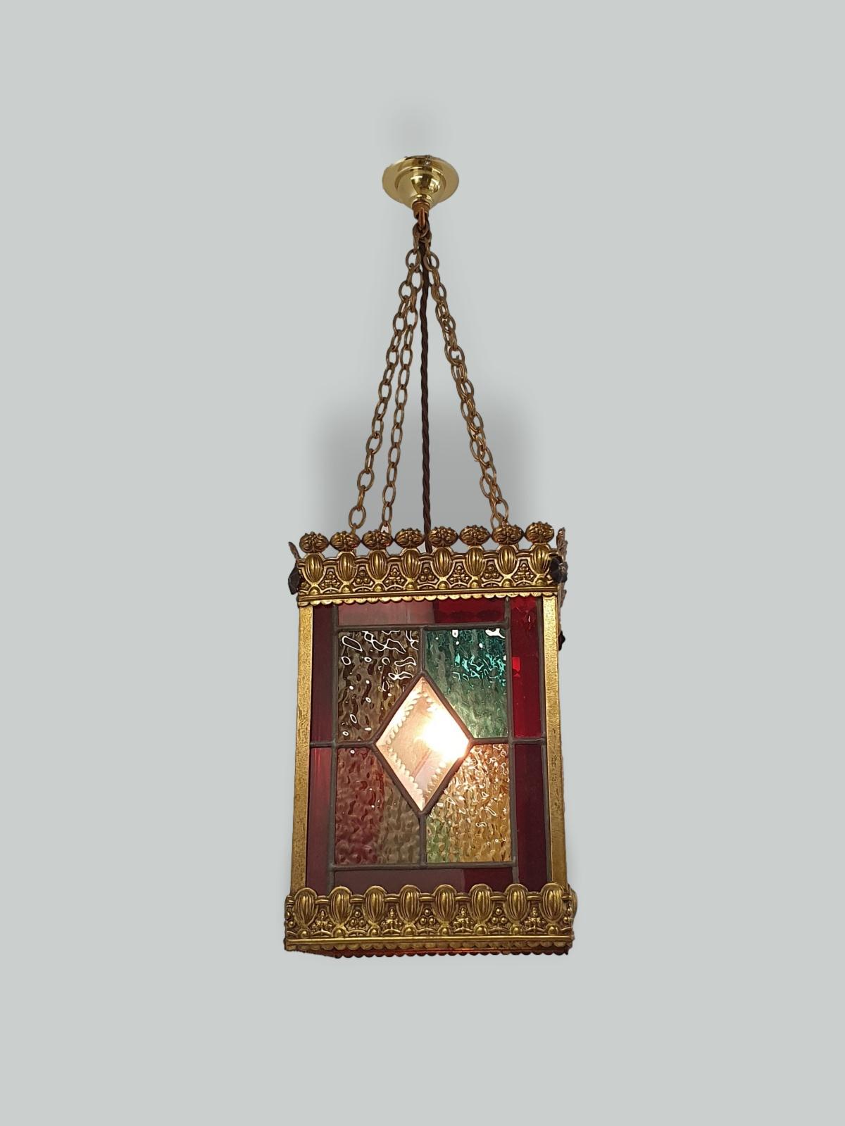 Decorative Frilled Lantern | Multi-coloured Stained-Glass Panels | England c.1900-10 | SOLD