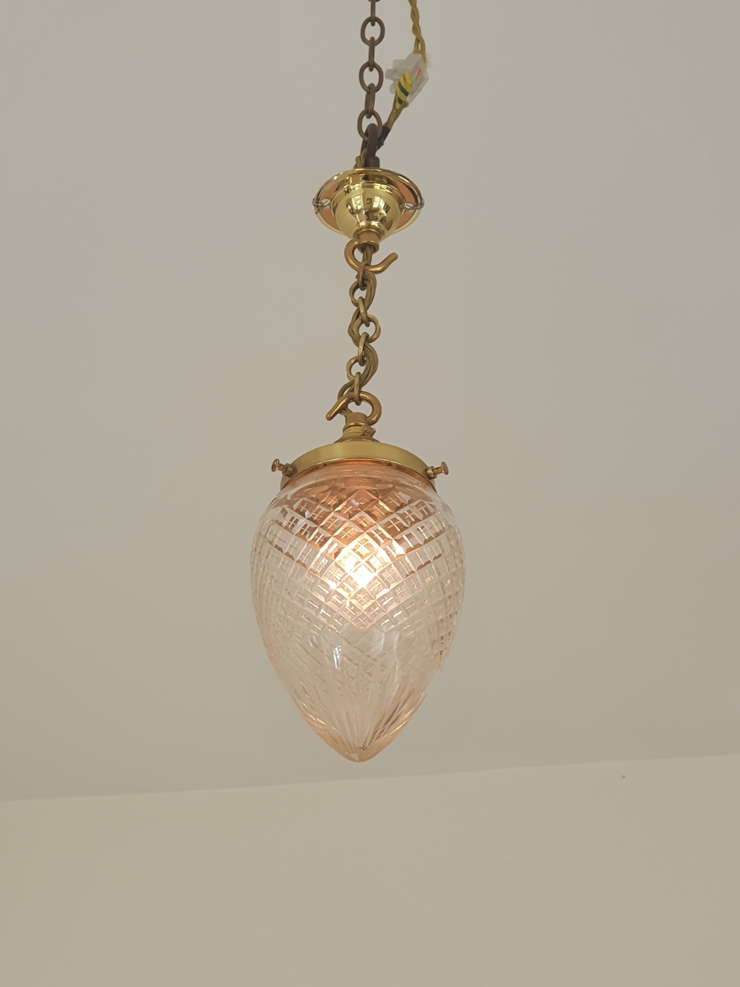 A cut-glass “pineapple” lampshade with plain brass reproductions fitments. England, c.1910.