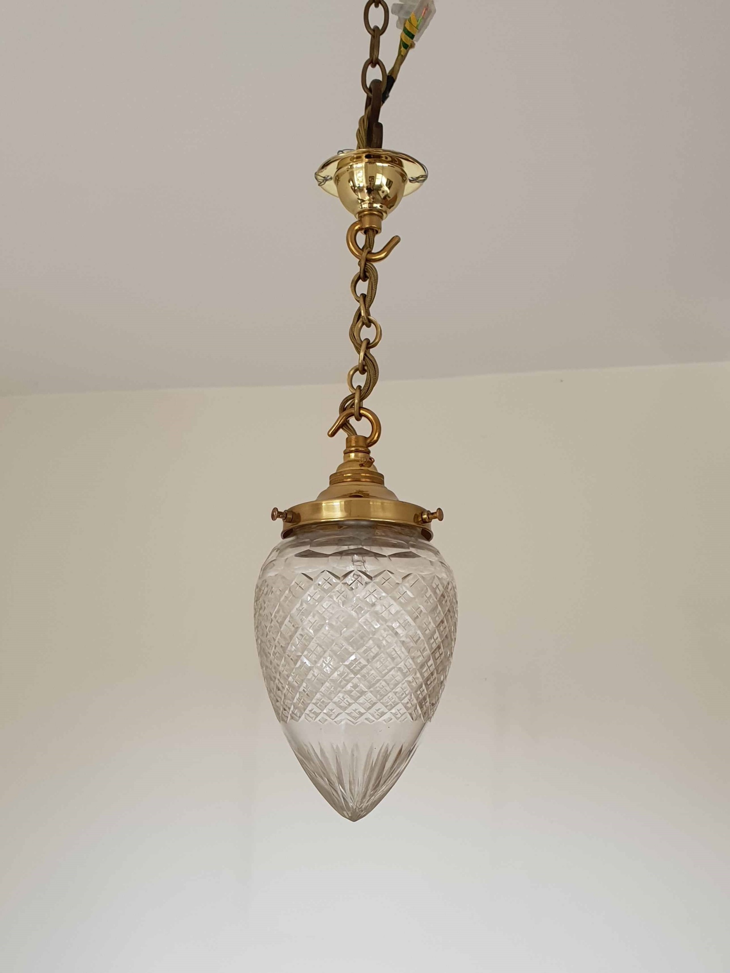 A cut-glass “pineapple” lampshade with plain brass reproductions fitments. England, c.1910.