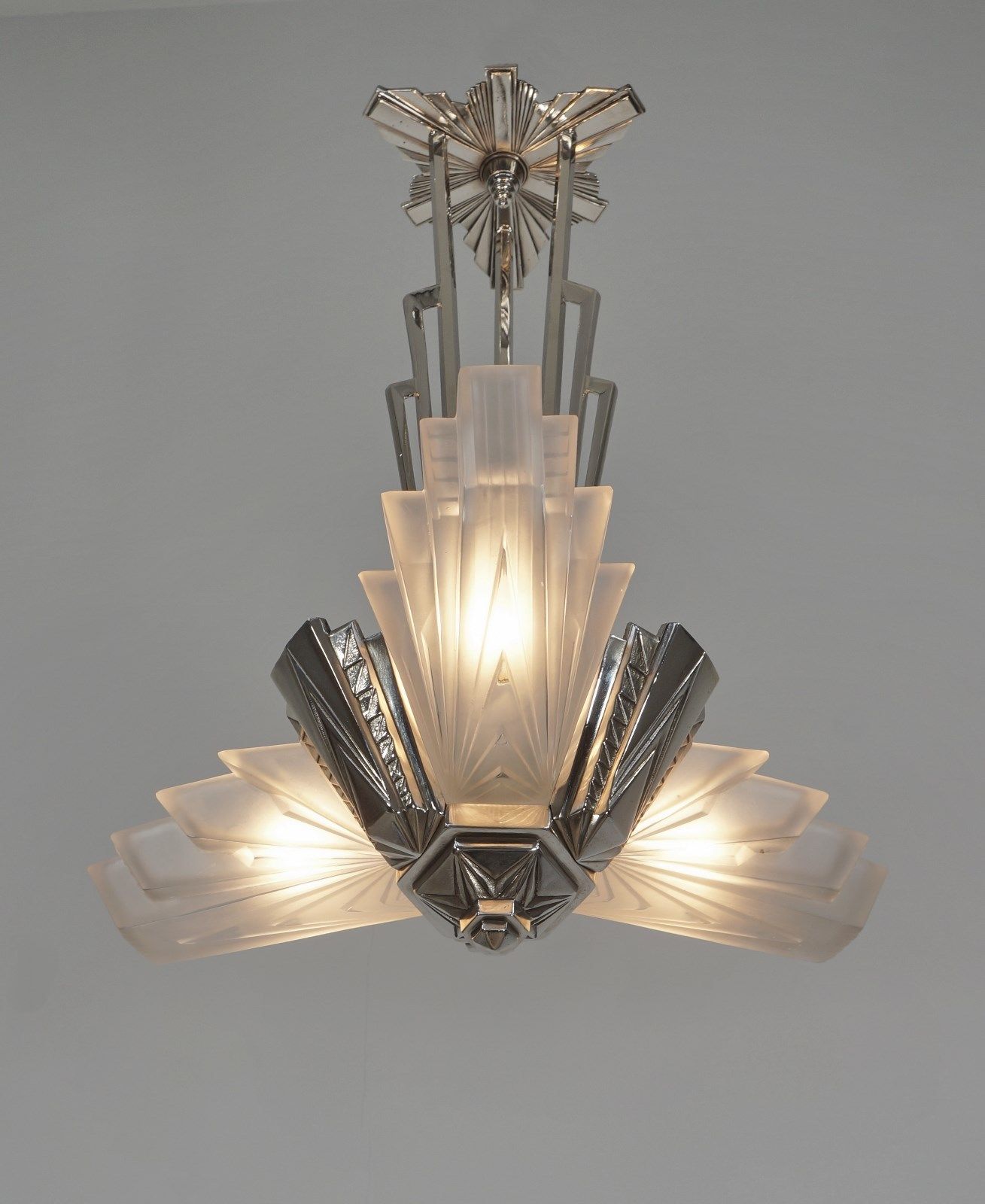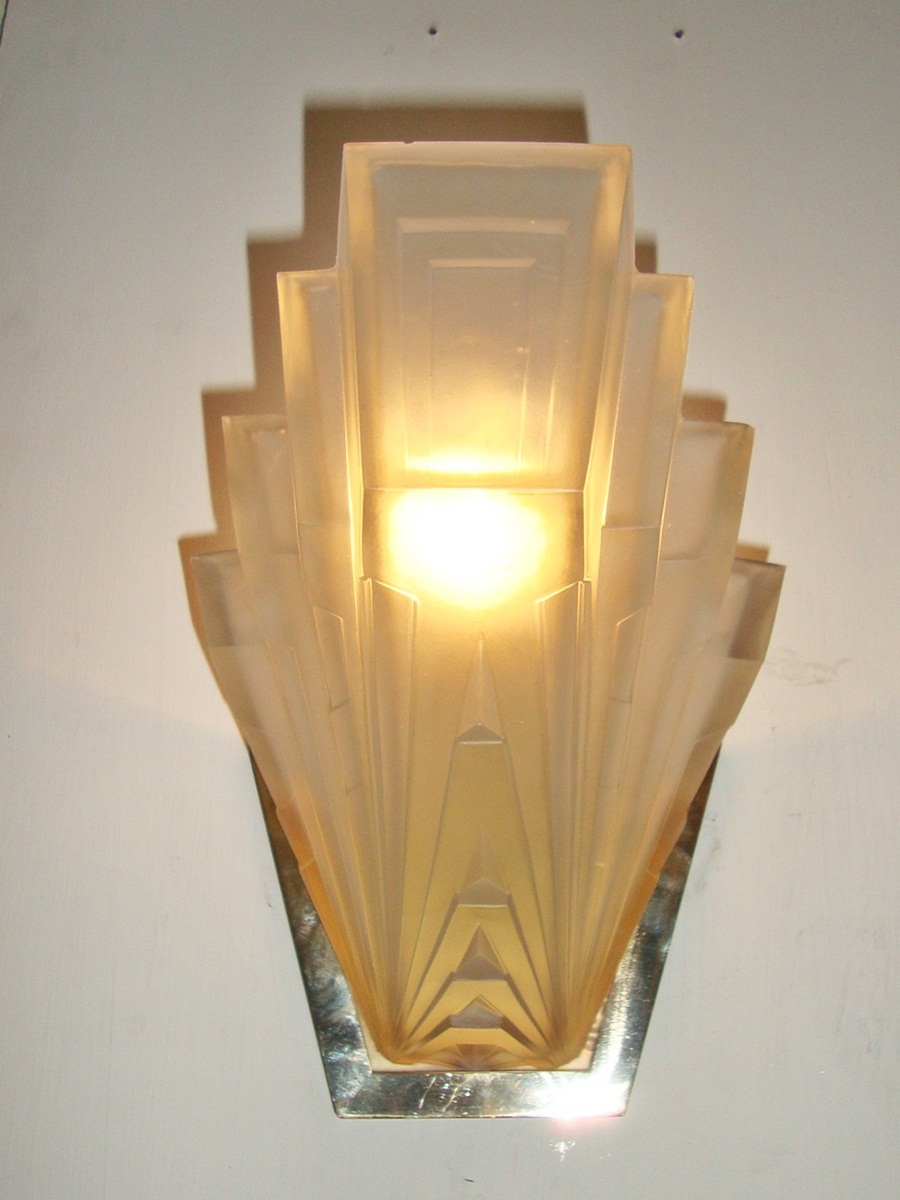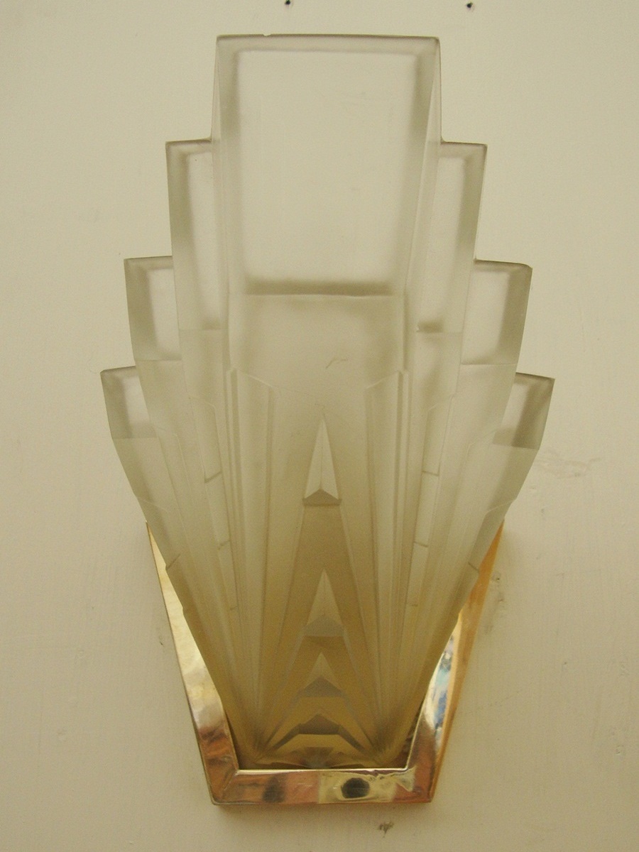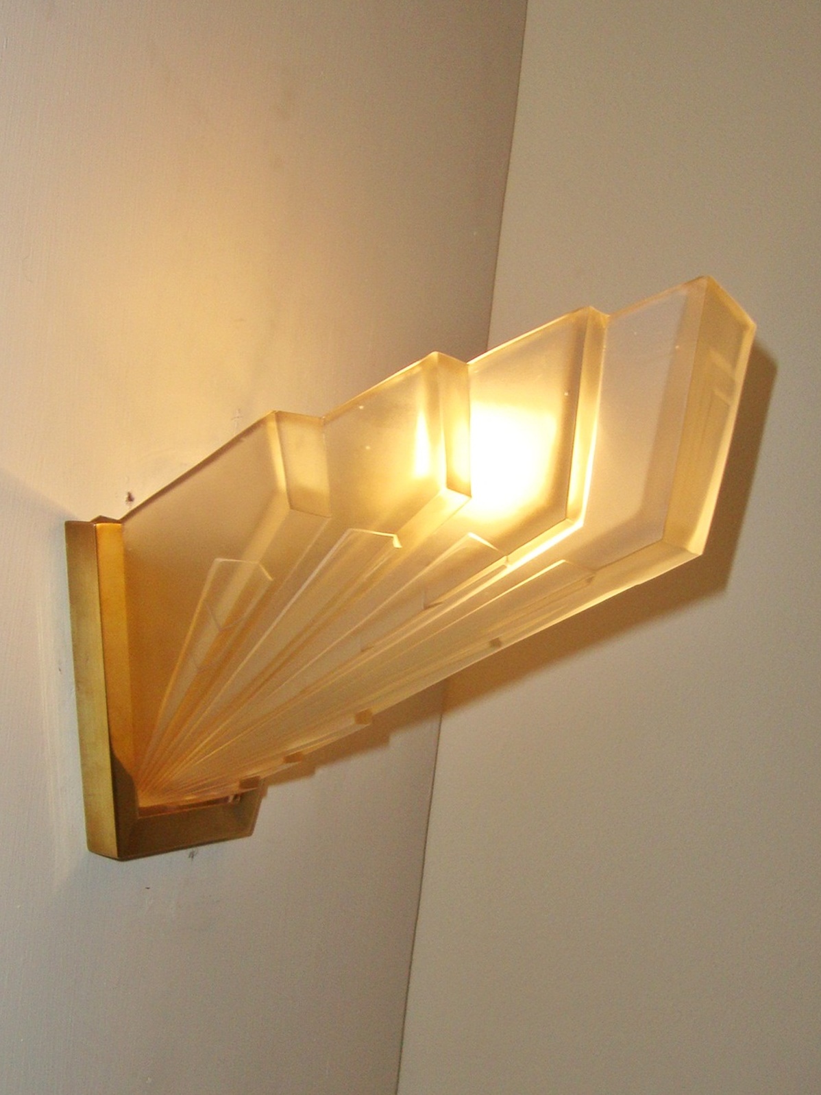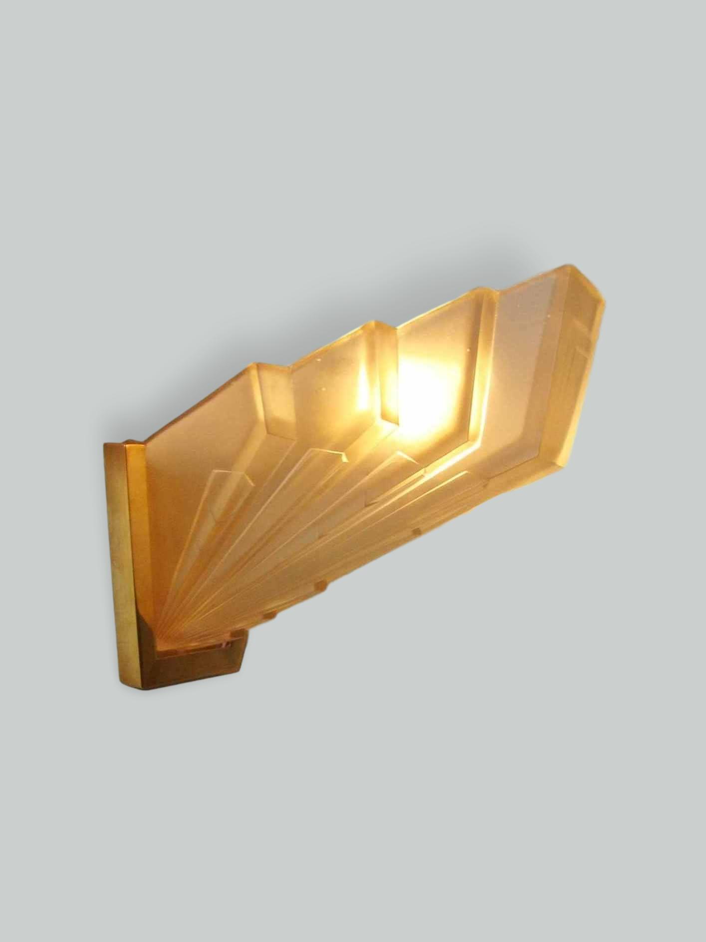 Ernst Marius Sabino | 2 Frosted Glass Art Deco Wall Lights | France c.1935