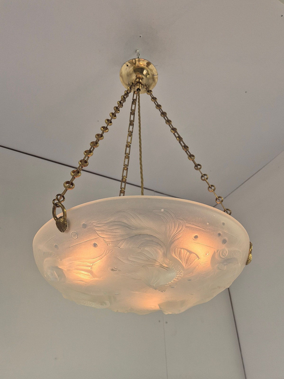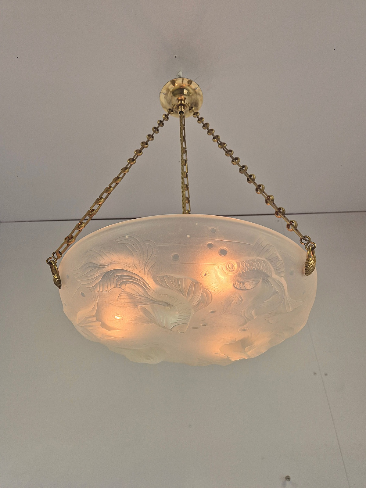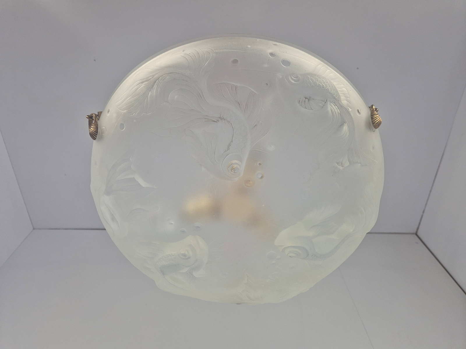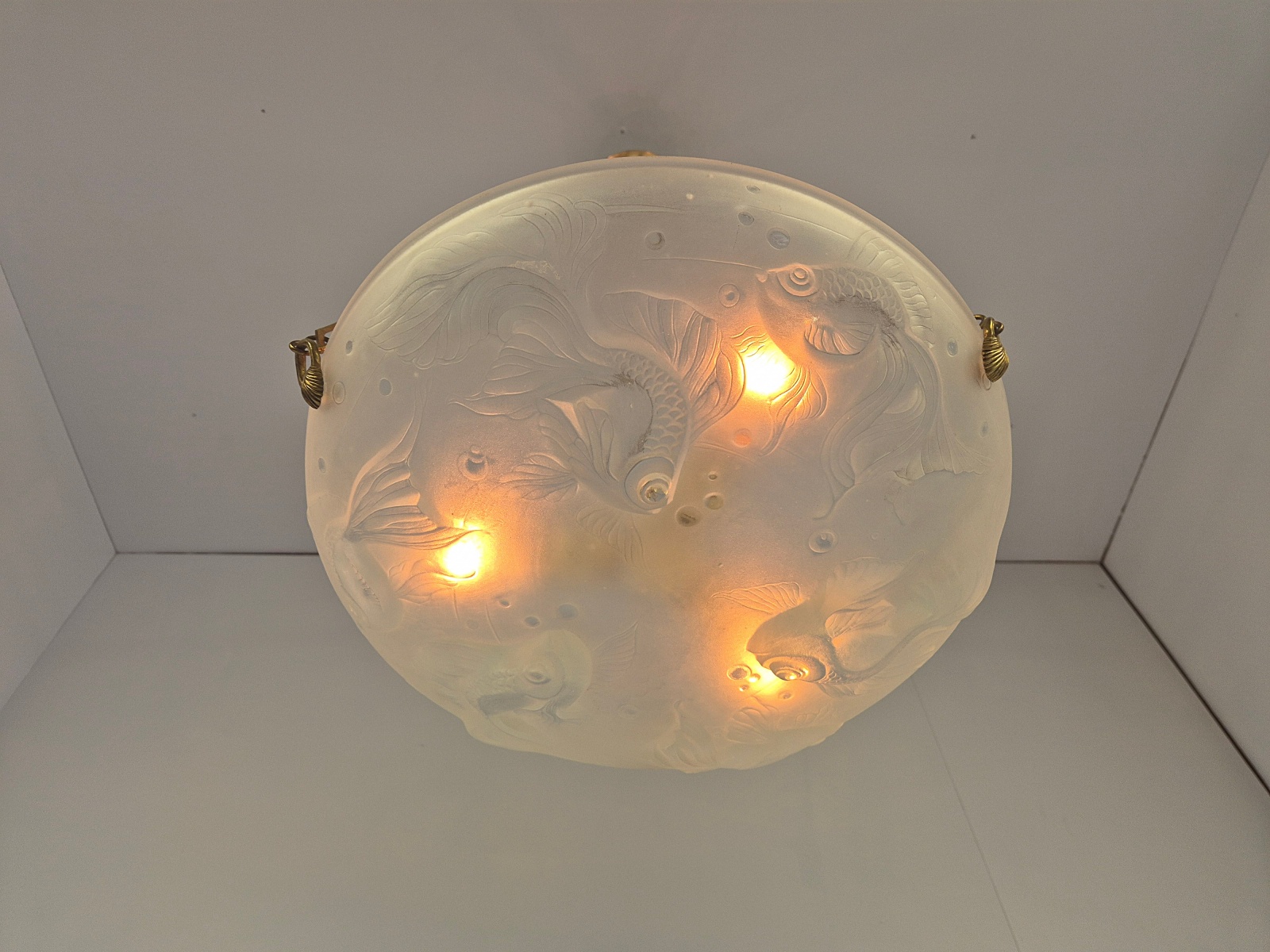 Ernst-Marius Sabino | 2 “Les Poissons” Opalescent Glass Plafonniers | France c.1930