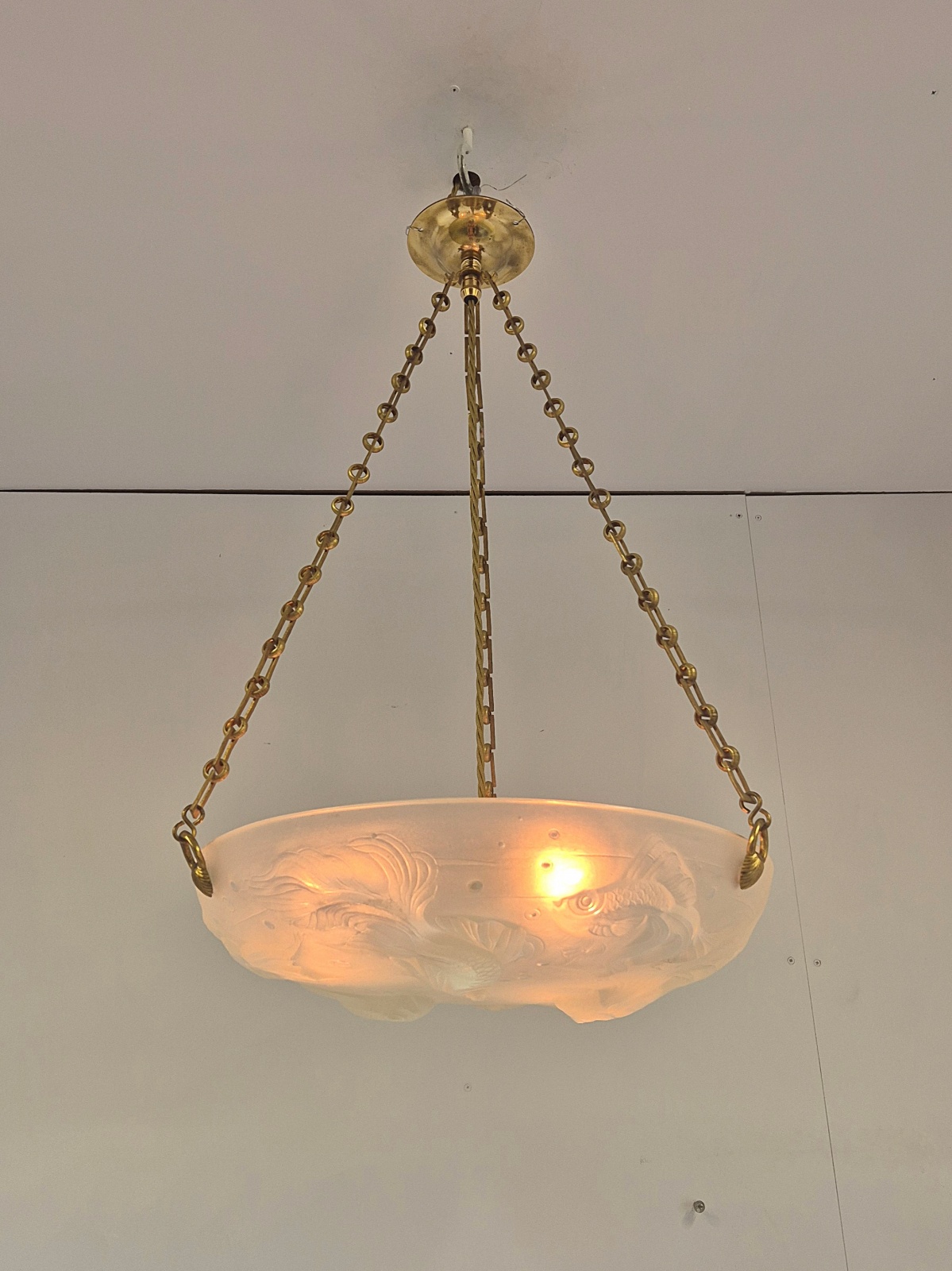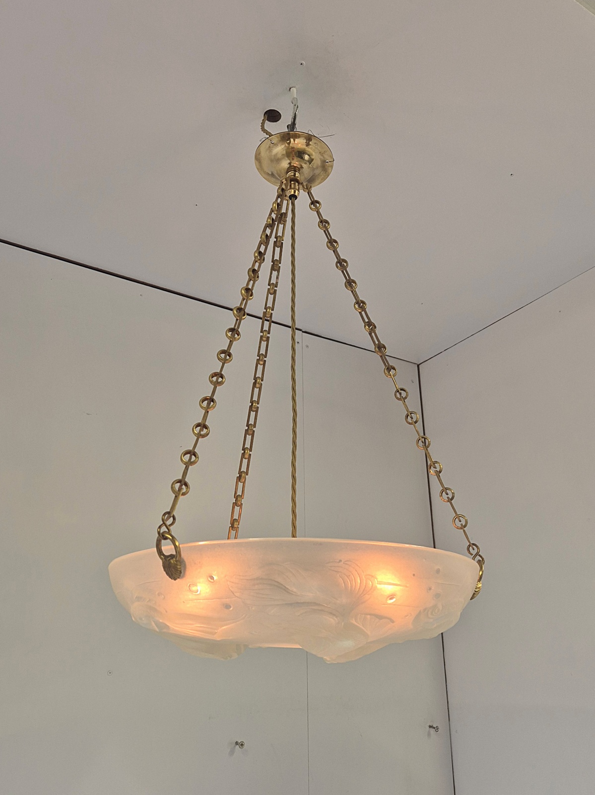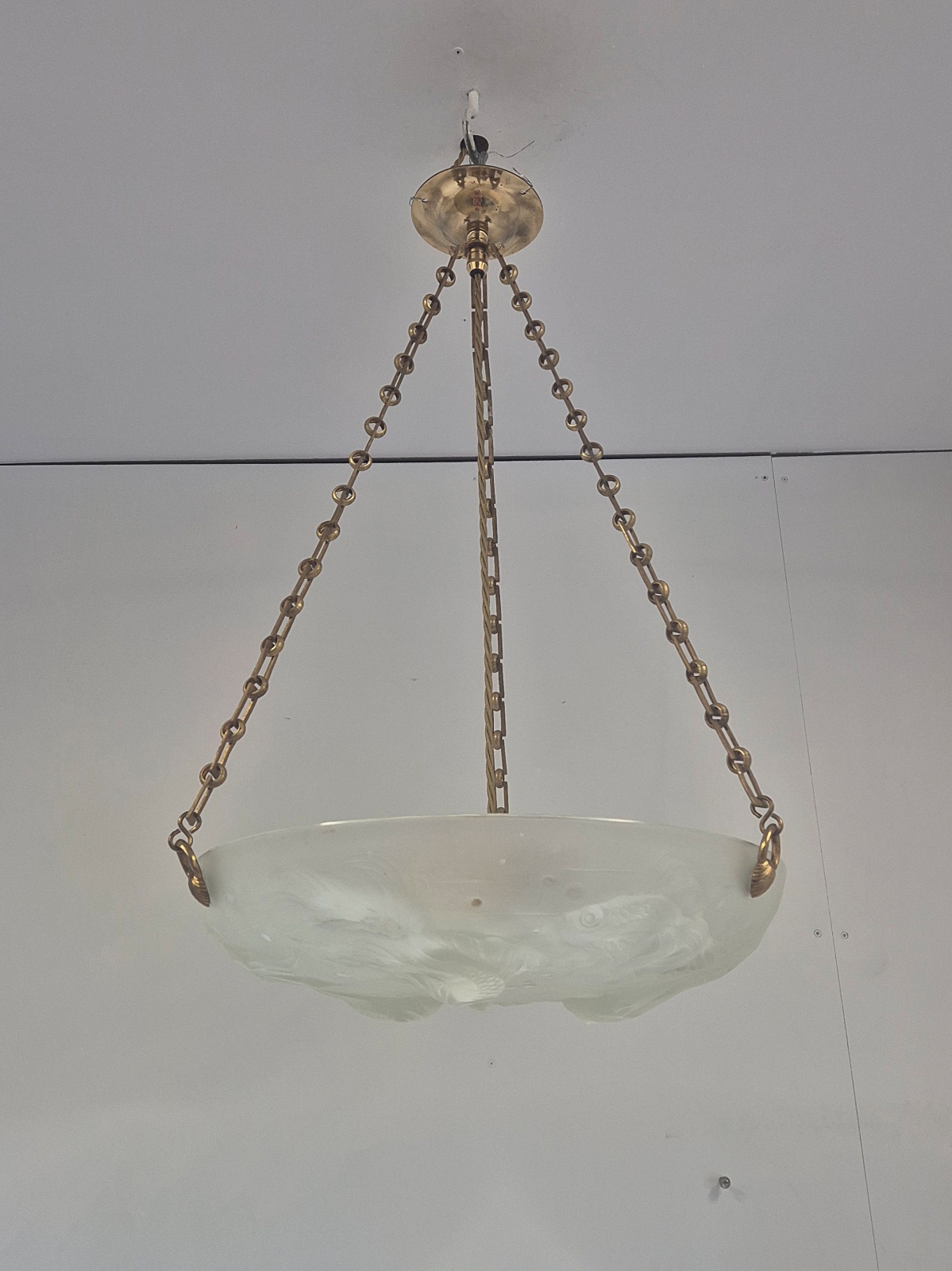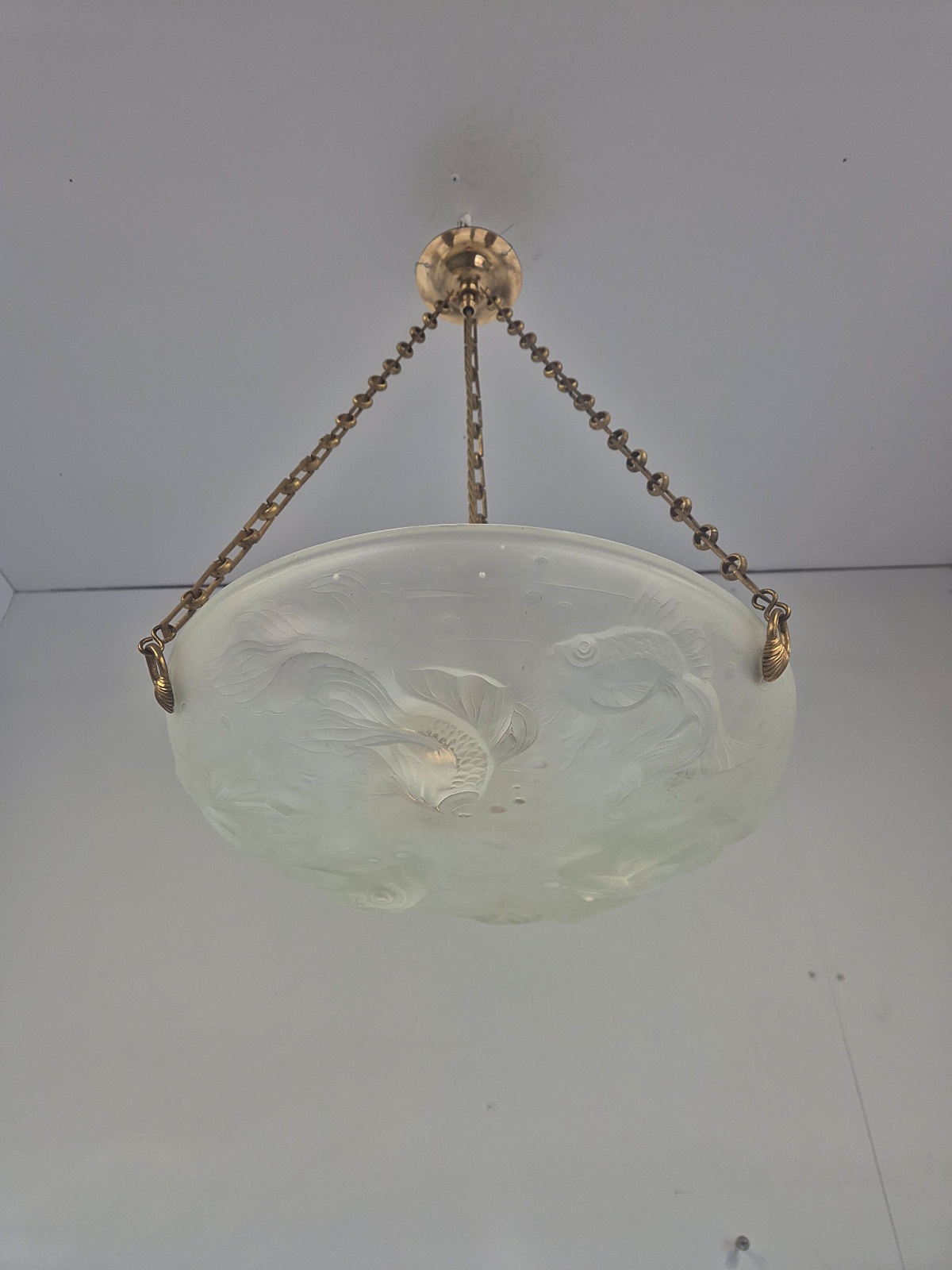 Ernst-Marius Sabino | 2 “Les Poissons” Opalescent Glass Plafonniers | France c.1930