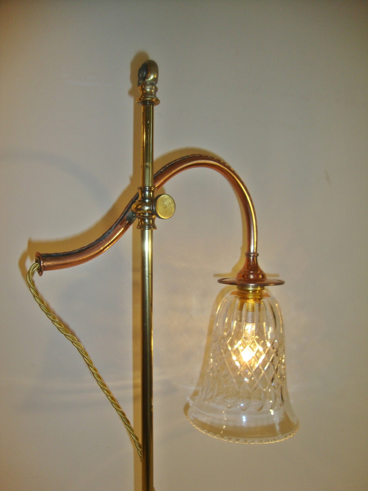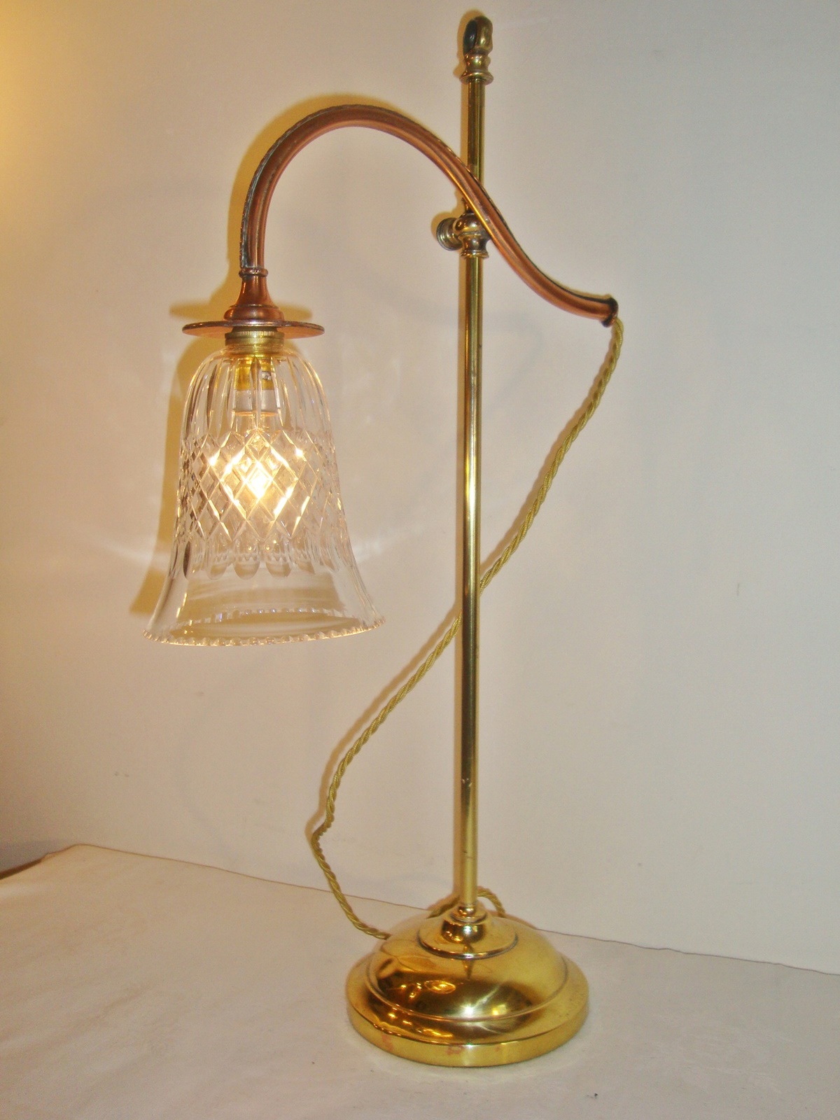 An adjustable brass “pump” or student’s lamp with cut-glass lampshade. France c1930