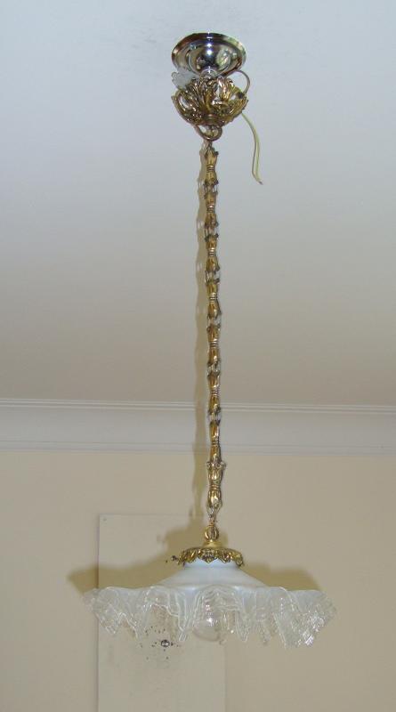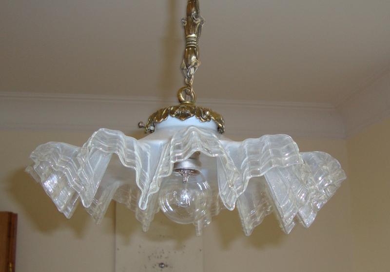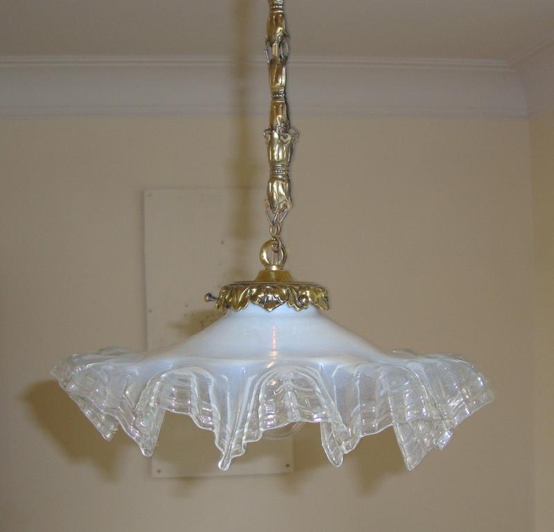 An opalescent glass “boudoir” or kitchen shade with original fitments. France early c20th