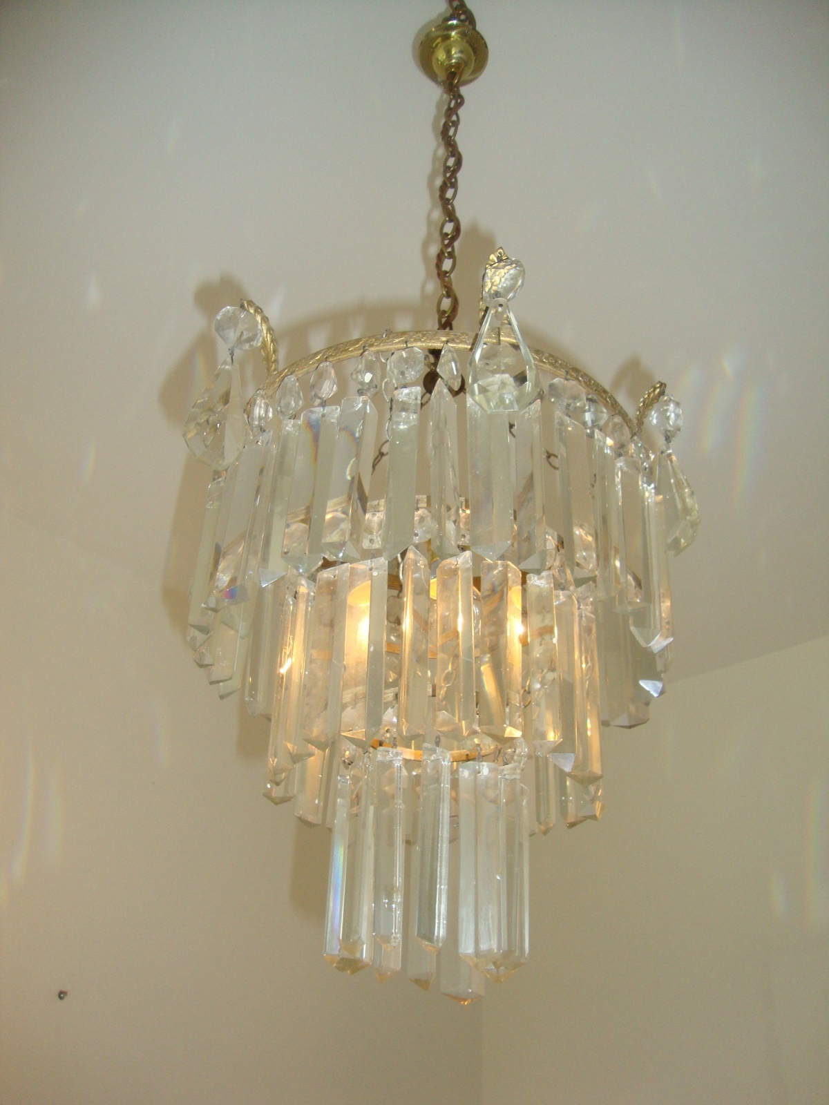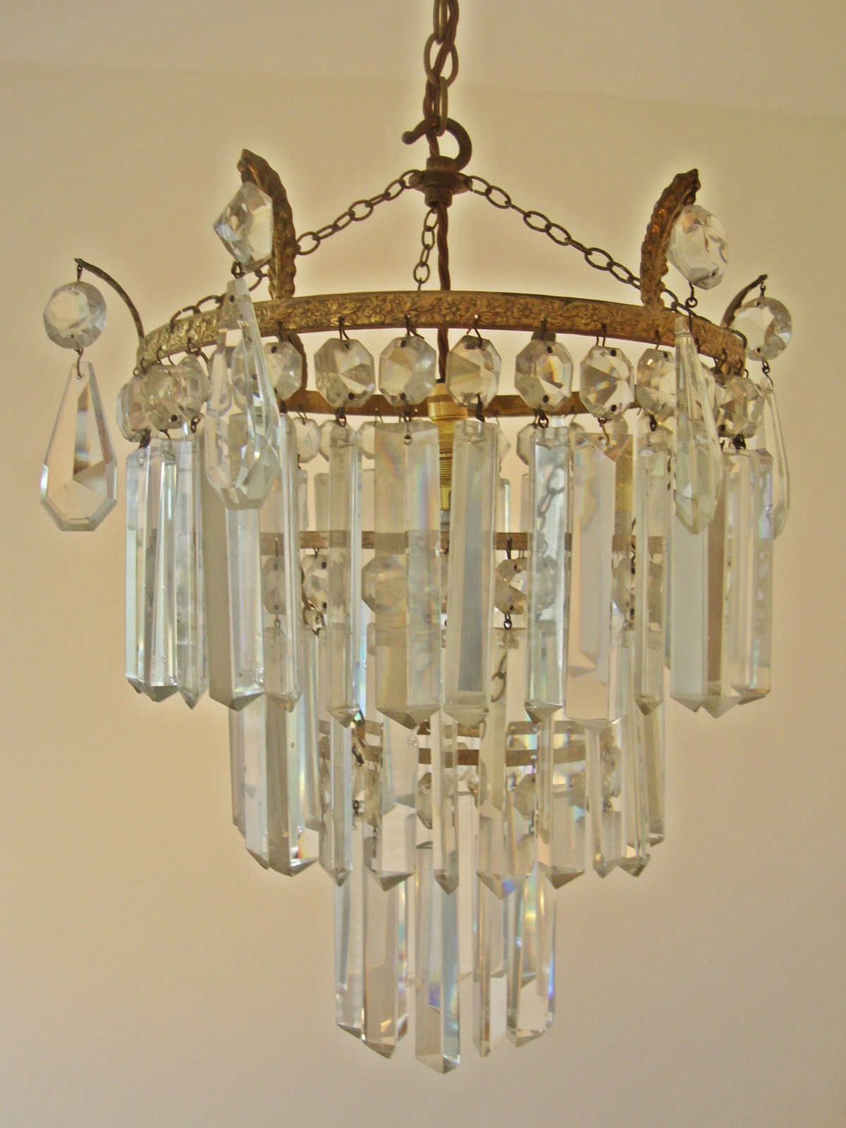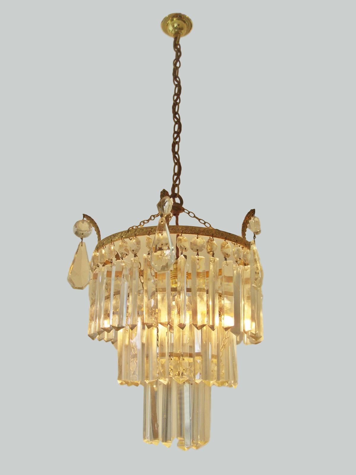 A large imprsssive three-tier hanging Lustre, each set with prismatic cut-glass drops. England early C20th