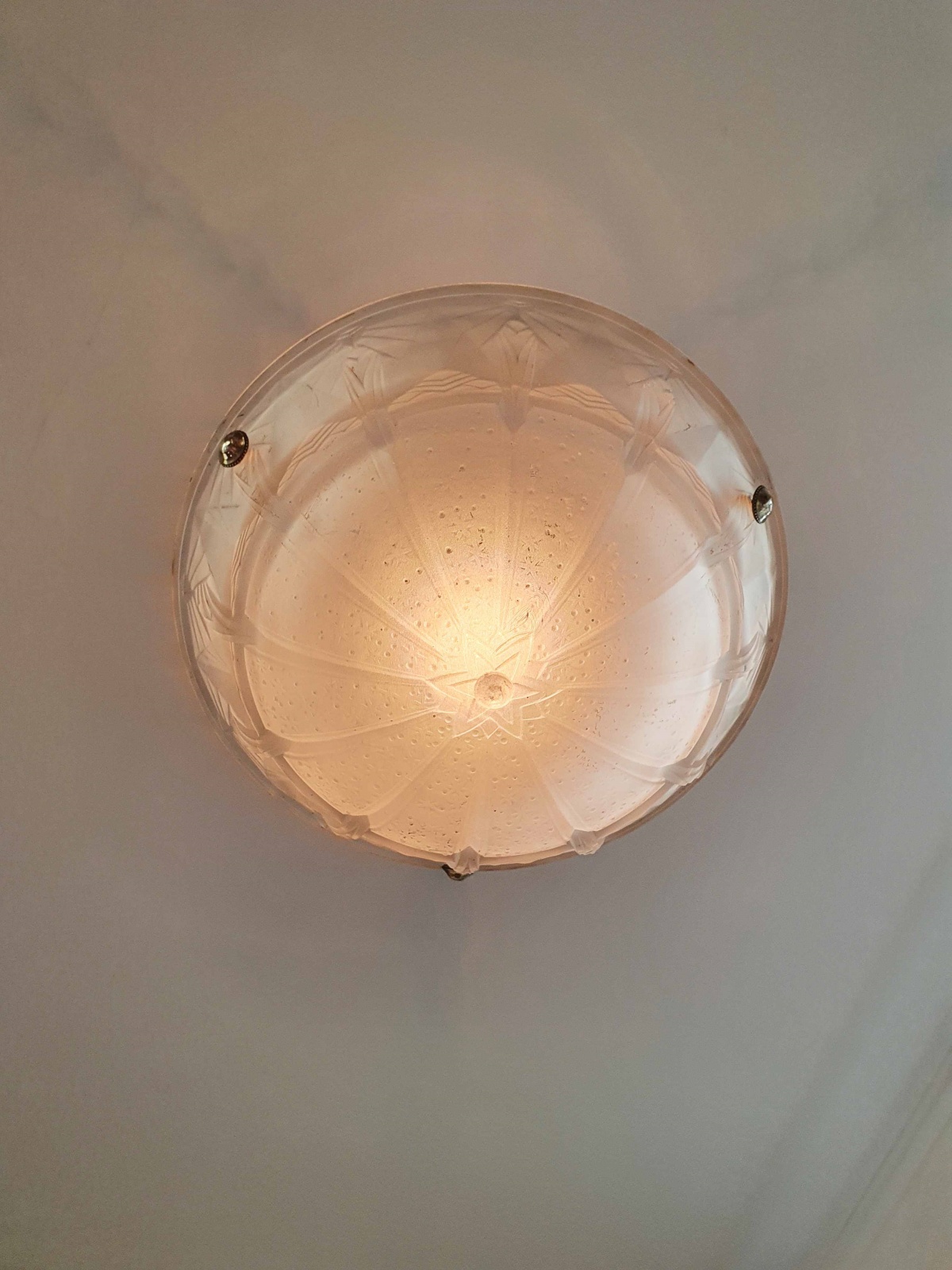 Muller Frères, Luneville | Art Deco Frosted-glass Plafonnier | France c.1930 | SOLD