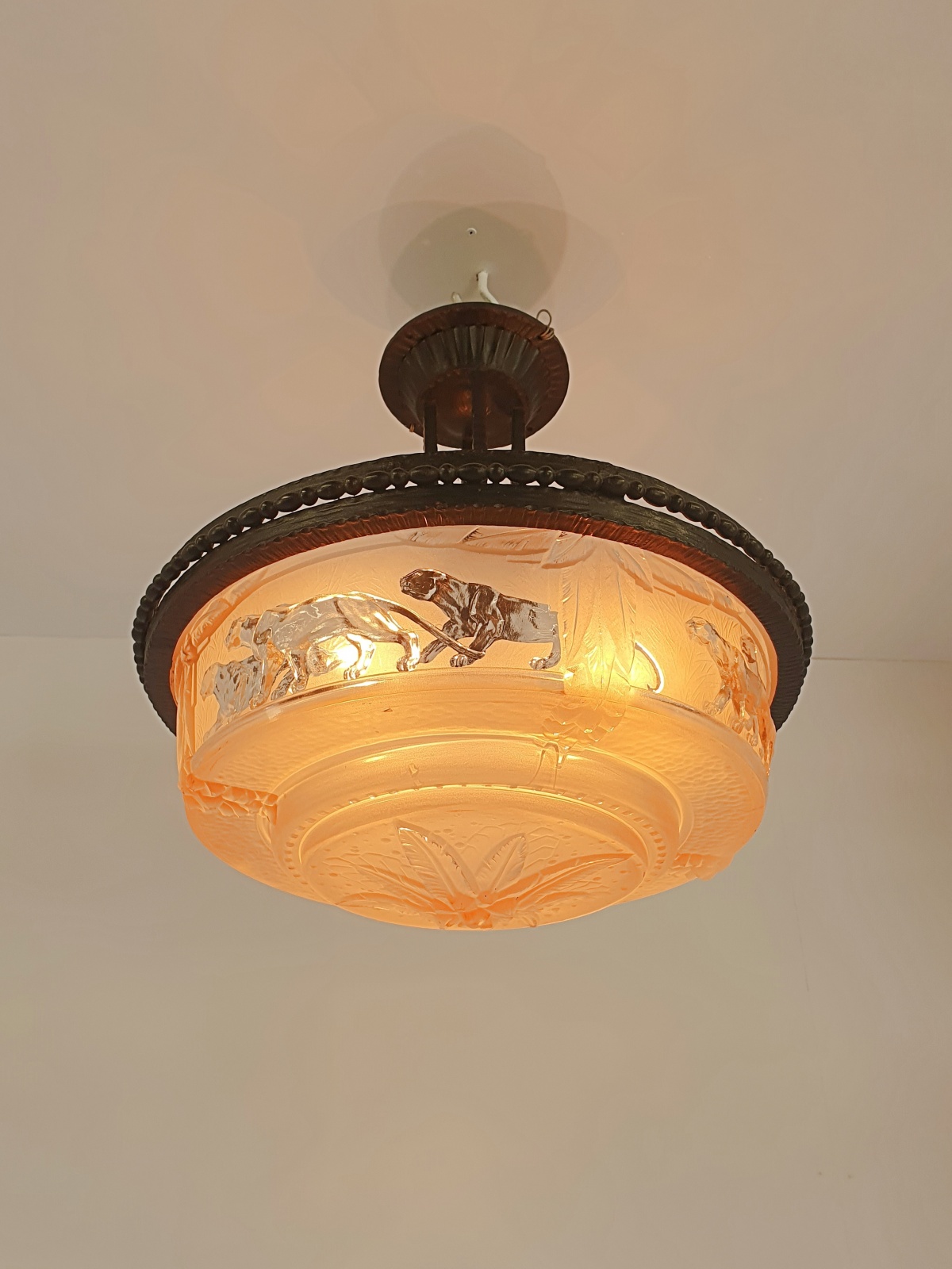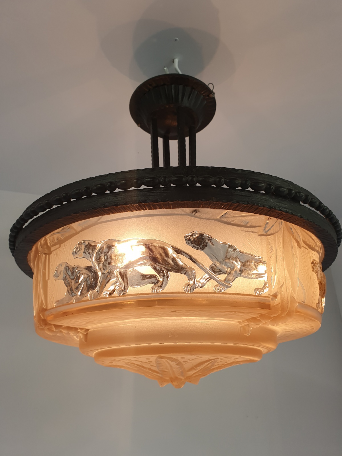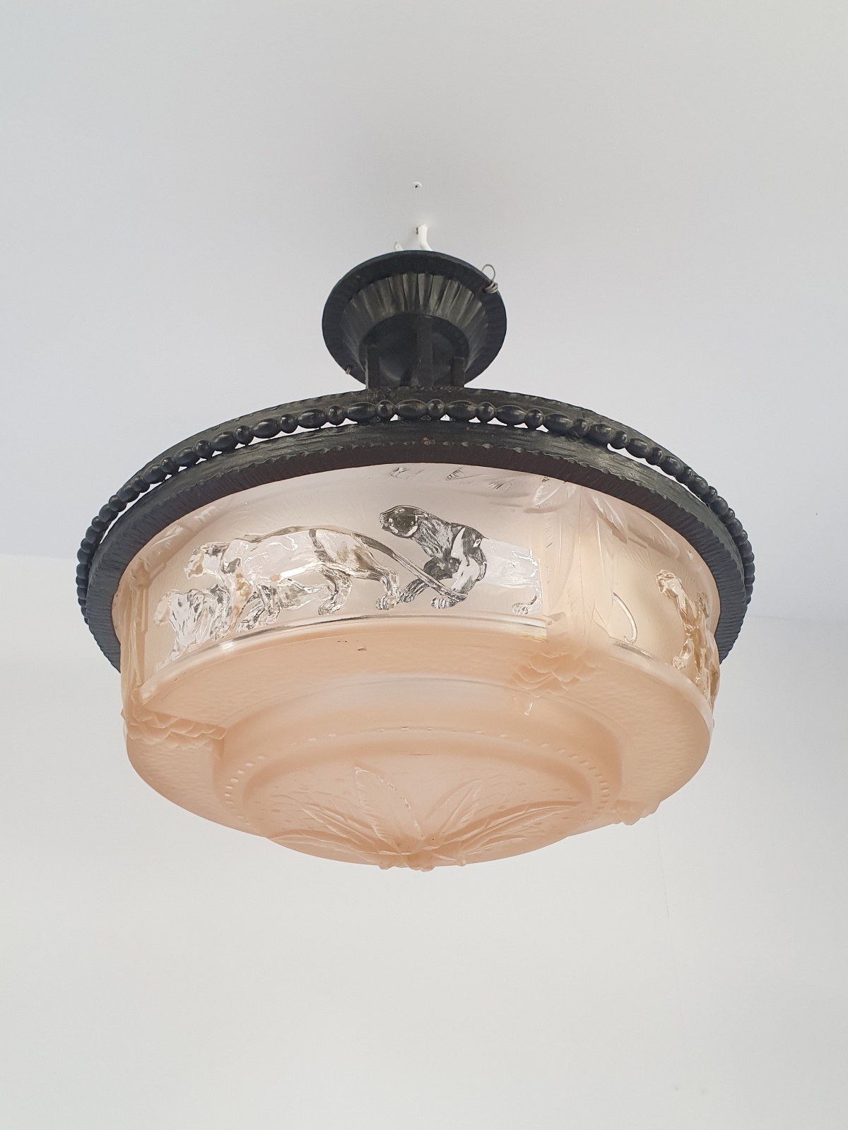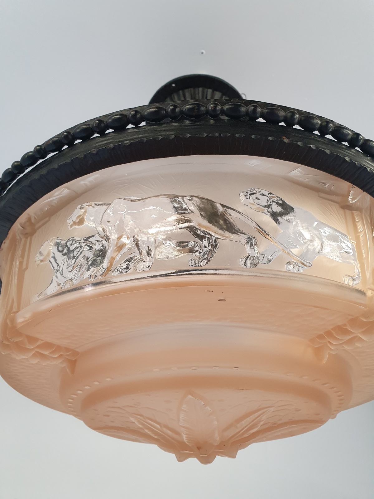Muller Frères, Luneville | “Les Panthères” Art Deco Plafonnier | France c.1930 | SOLD