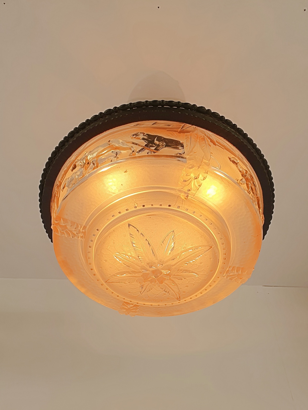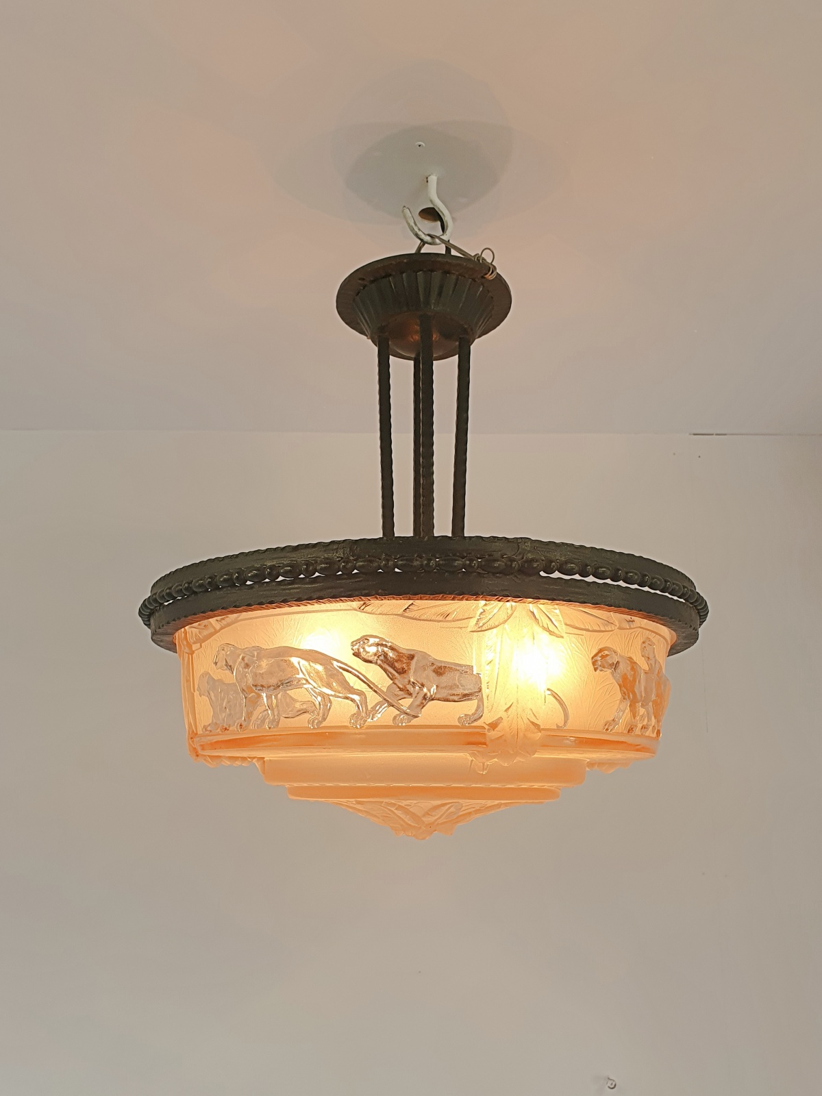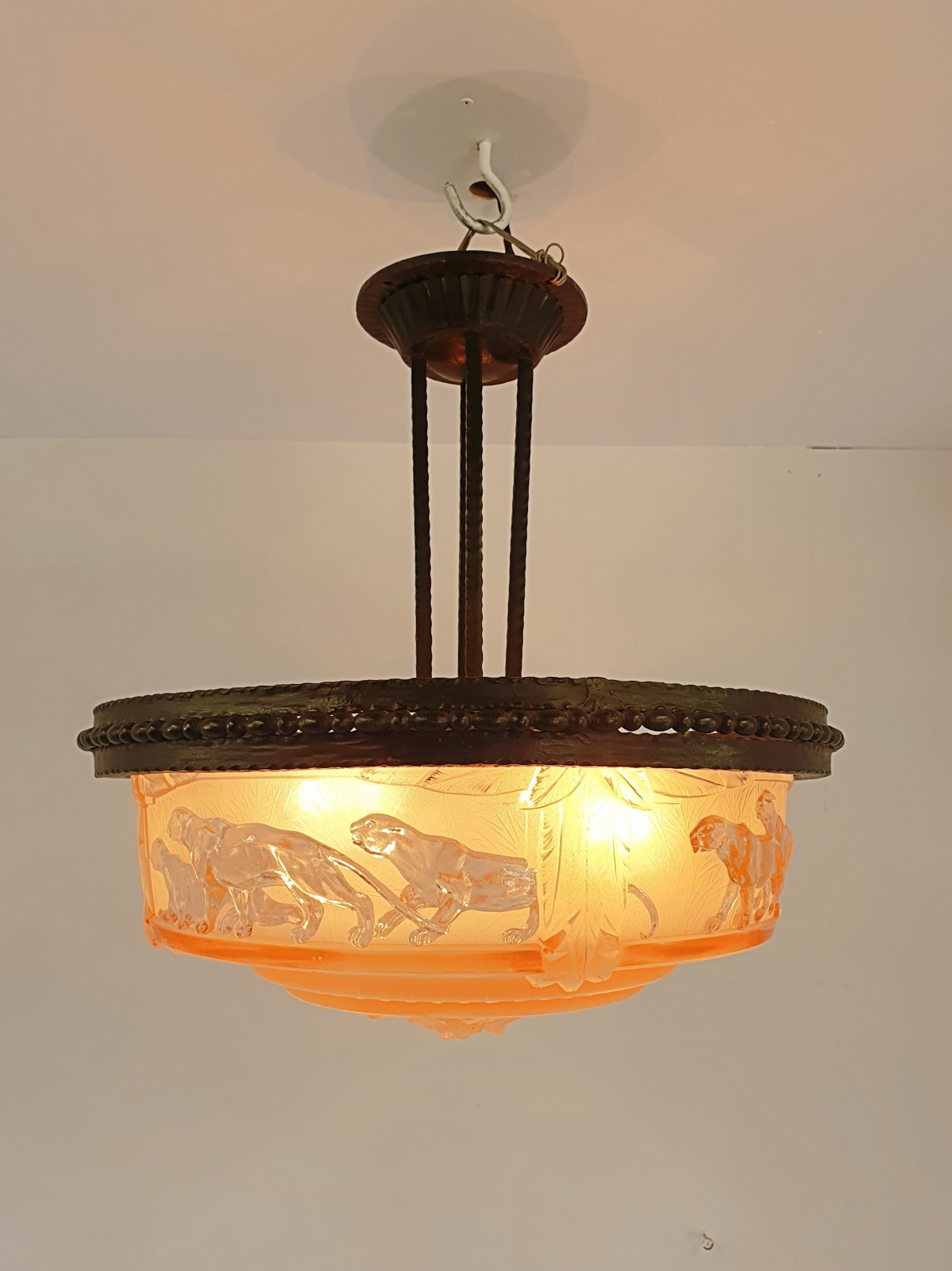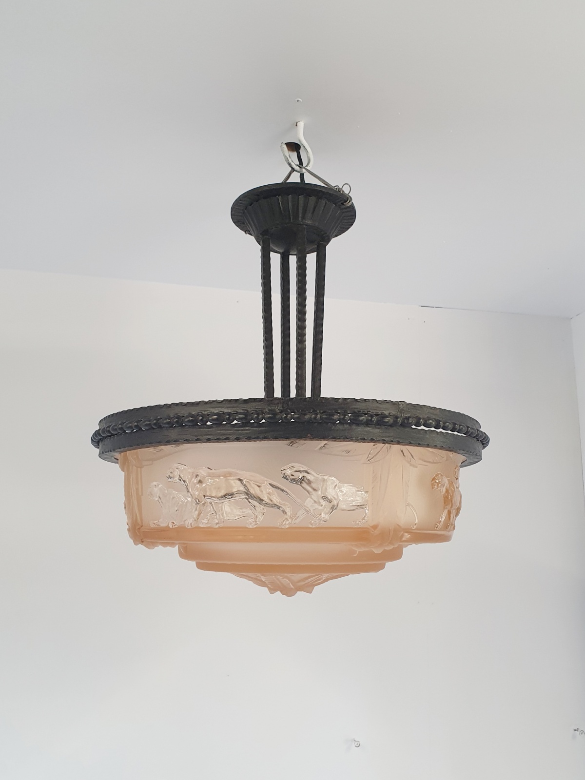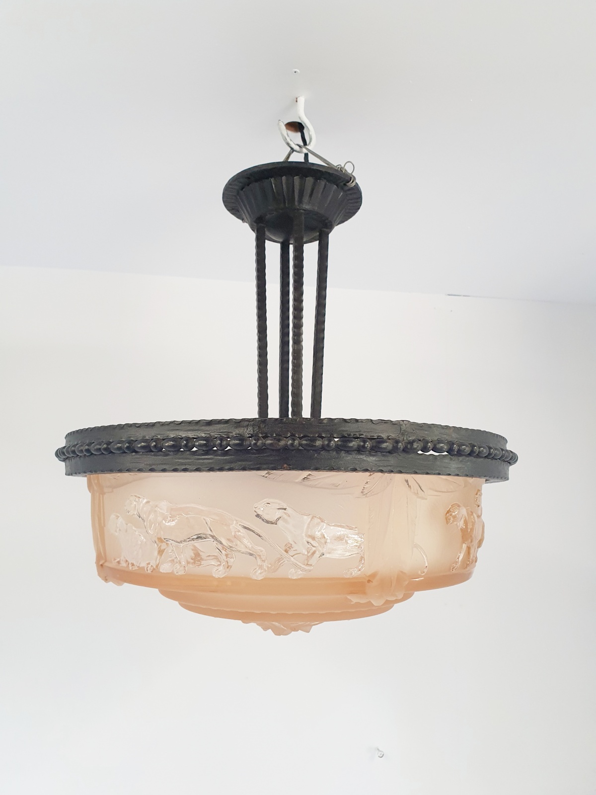 Muller Frères, Luneville | “Les Panthères” Art Deco Plafonnier | France c.1930 | SOLD