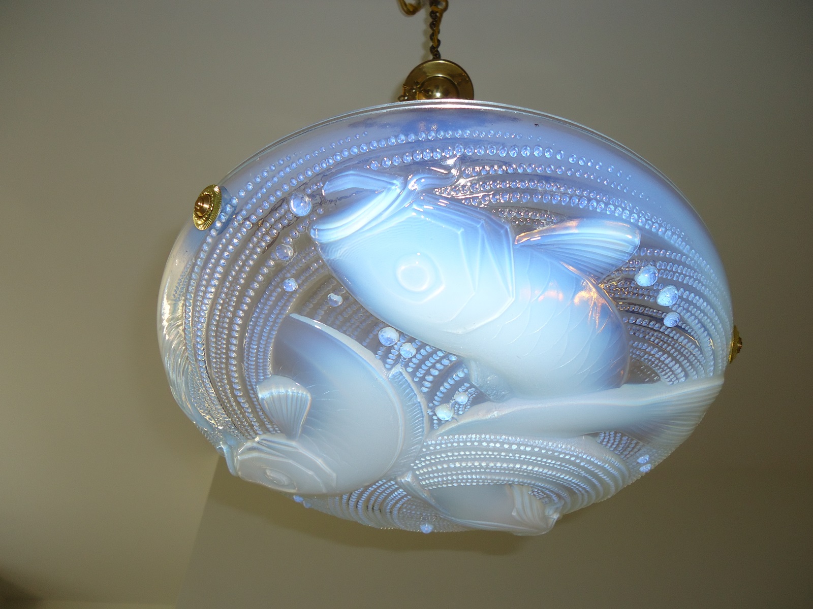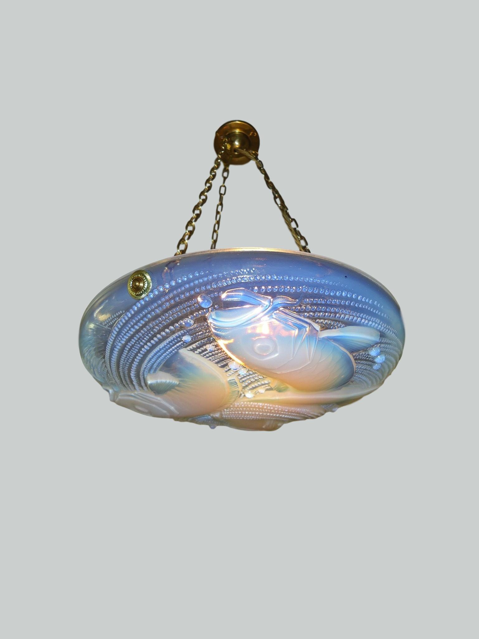 Pierre D’avesn | “Les Carpe” Opalescent Glass Plafonnier | France c.1930 | SOLD