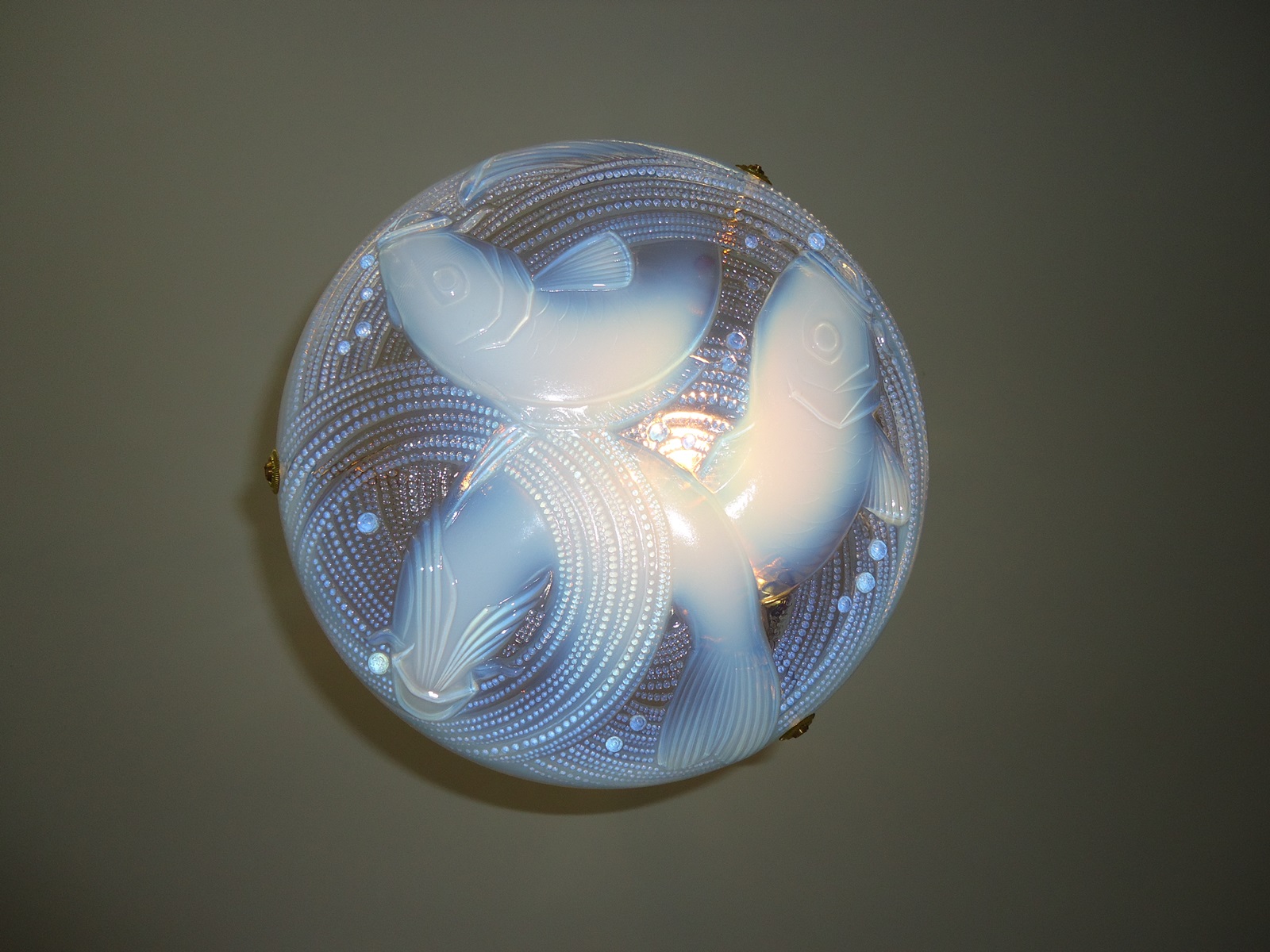 Product Code: LG282A beautiful “Les Carpe” Opalescent Glass Plafonnier designed and signed by Pierre D’avesn either while he worked at Verreries D’art Lorrain or Verlys. France c.1930
