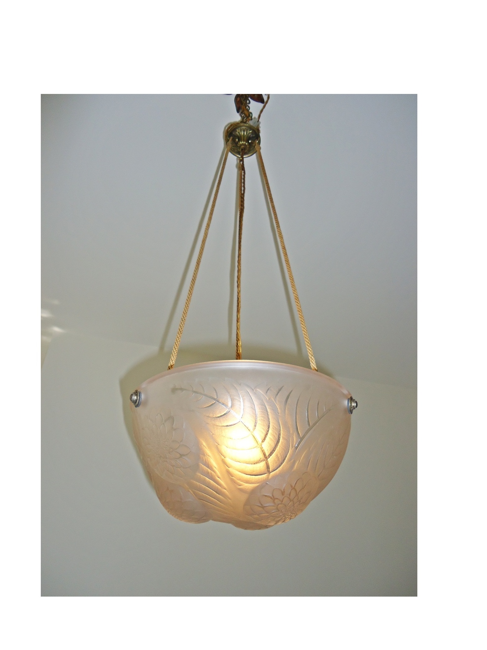 Product Code: JAL0928A good Lalique “Dahlia” frosted-glass plafonnier designed with flowers and engraved in the glass “R.LALIQUE, FRANCE”; France.c.1925.