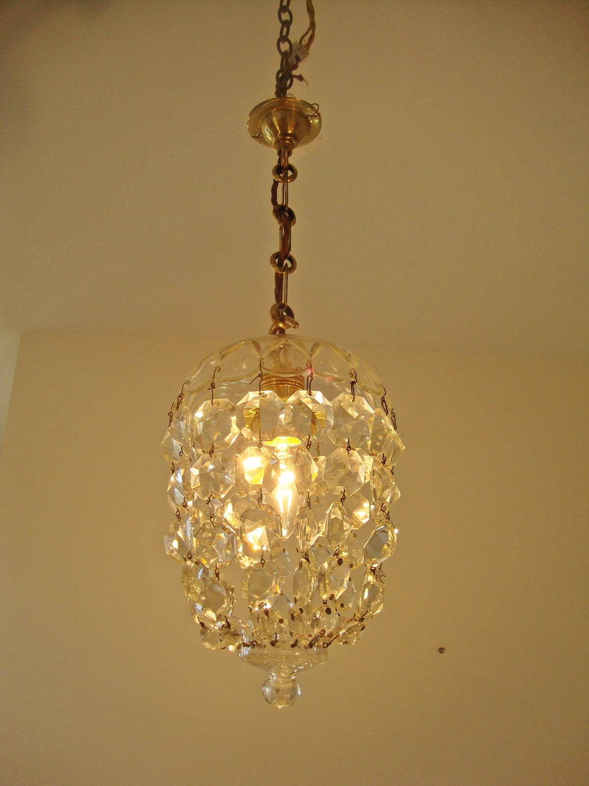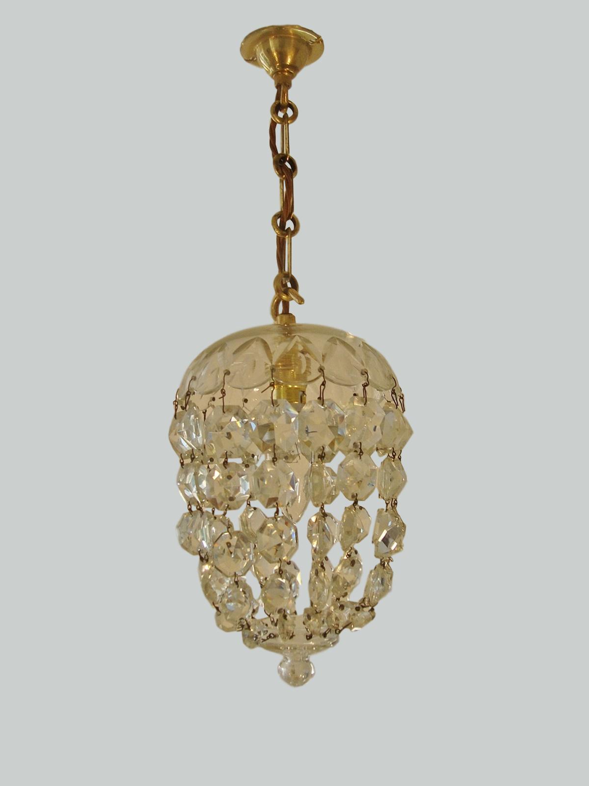 A small glass domed “tent” lustre with strands of table-cut crystal drops. England early c.20th. Ht. of lustre 26.5cm/10.5ins; ht. ill. with chain 46/18; diam. 17/6.5.
