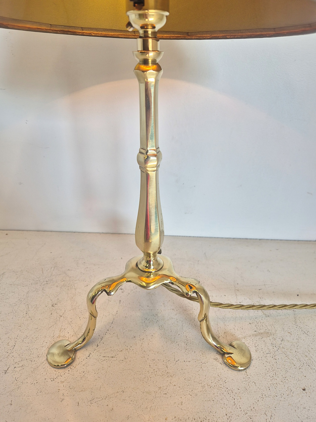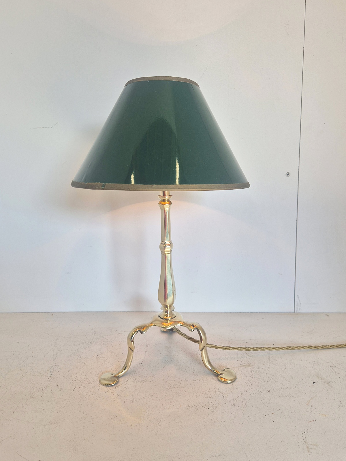 Product Code: LG809A good quality brass “Pullman Coach” carriage lamp rare in design due to its wider than usual feet span. In the style of Faraday & Son, London but apparently unsigned and displayed with green lampshade (not included). England c.1925