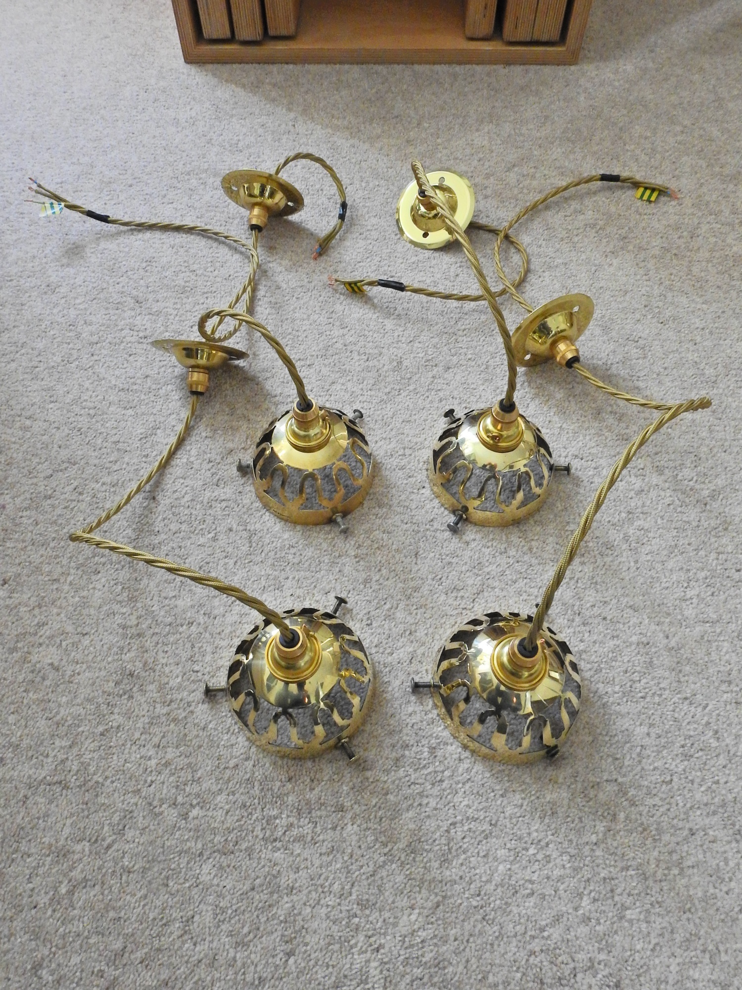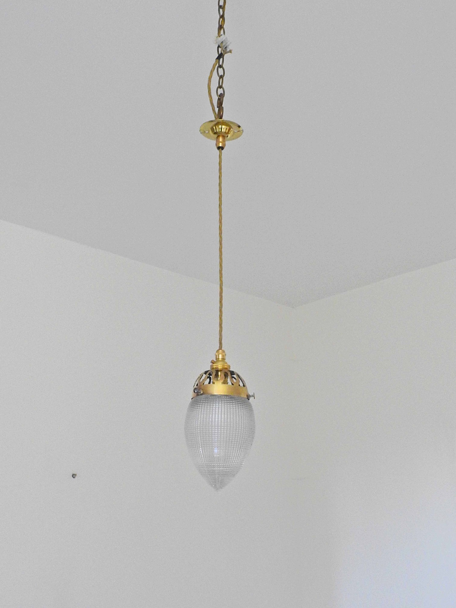 Product Code: LG499A set of 4 Holophane “pineapple” lampshades in “Blondel” prism each with the original pierced brass gallery. England c.1915