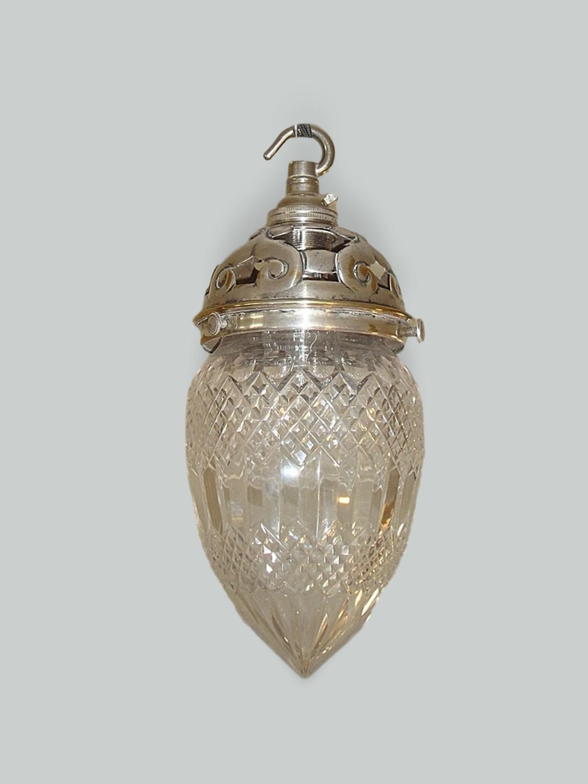 A set of 3 cut-glass “pineapple” pendants with original silver-plated galleries, England c1905