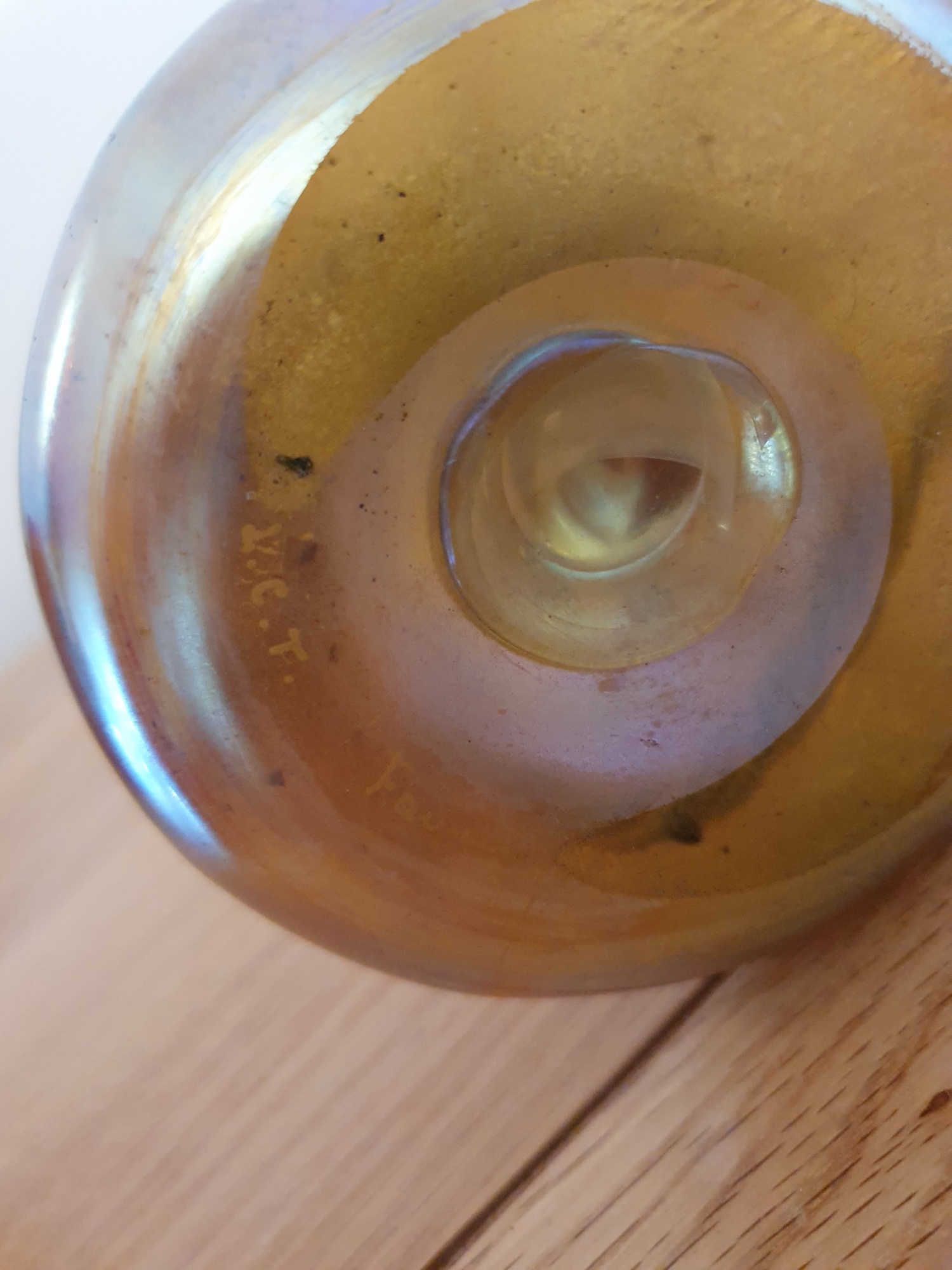 Product Code: JAL0007A pretty art nouveau Favrile glass candlestick by Tiffany & Co. New York signed on the base “L.C.T. Favrile”. U.S.A c.1910