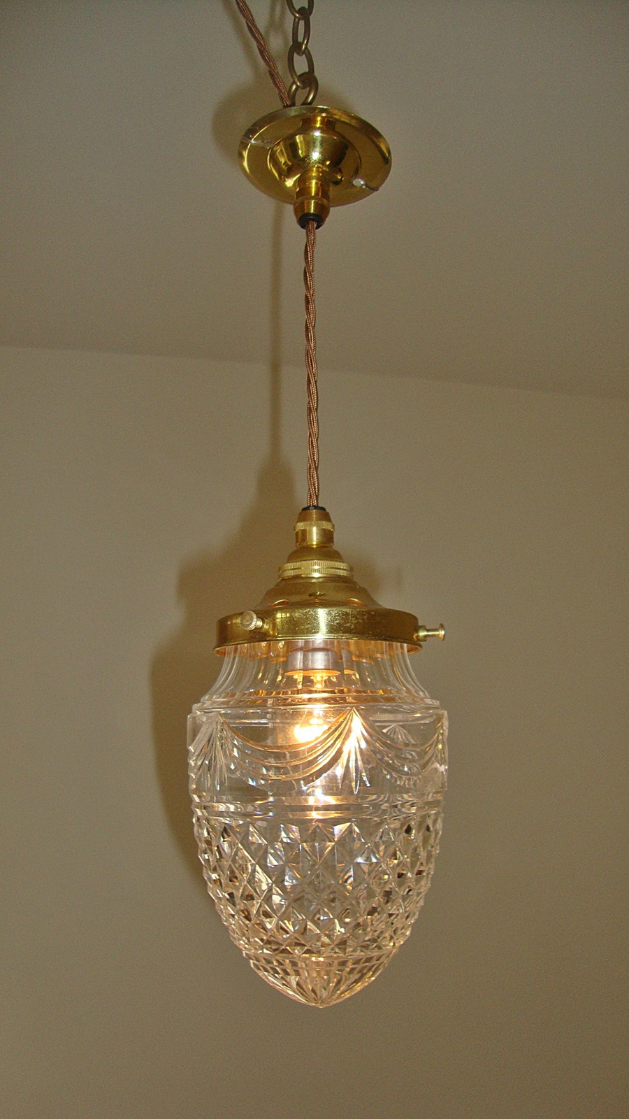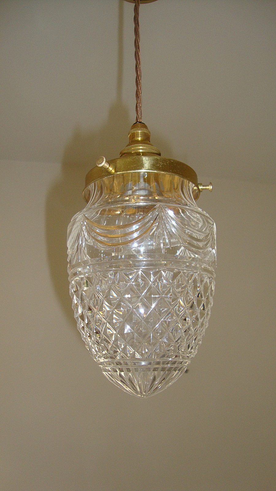A pair of cut-glass “pineapple” lampshades with replacement brass fitments. England, c.1900.