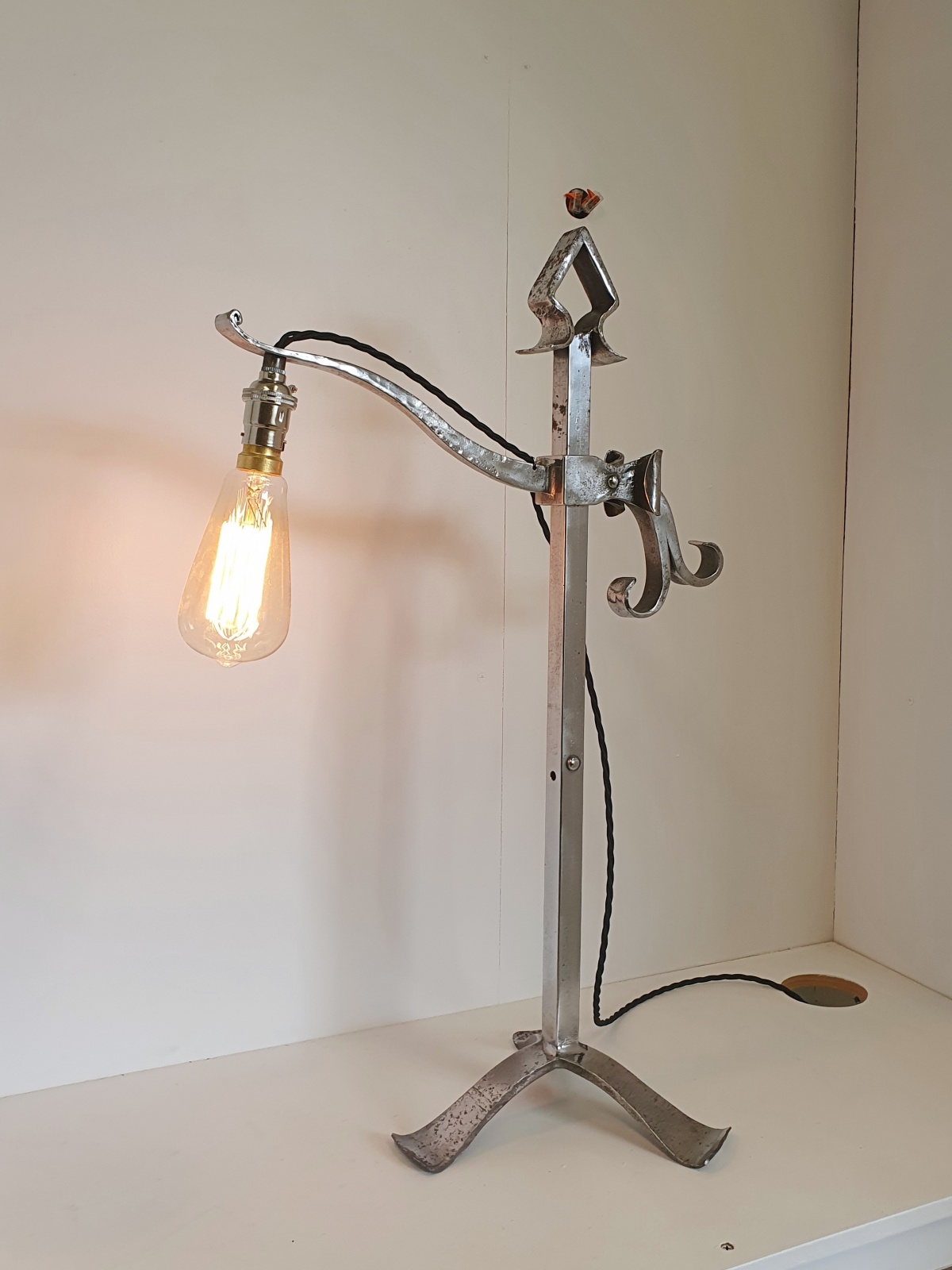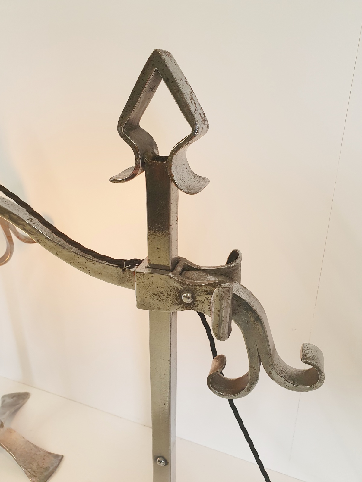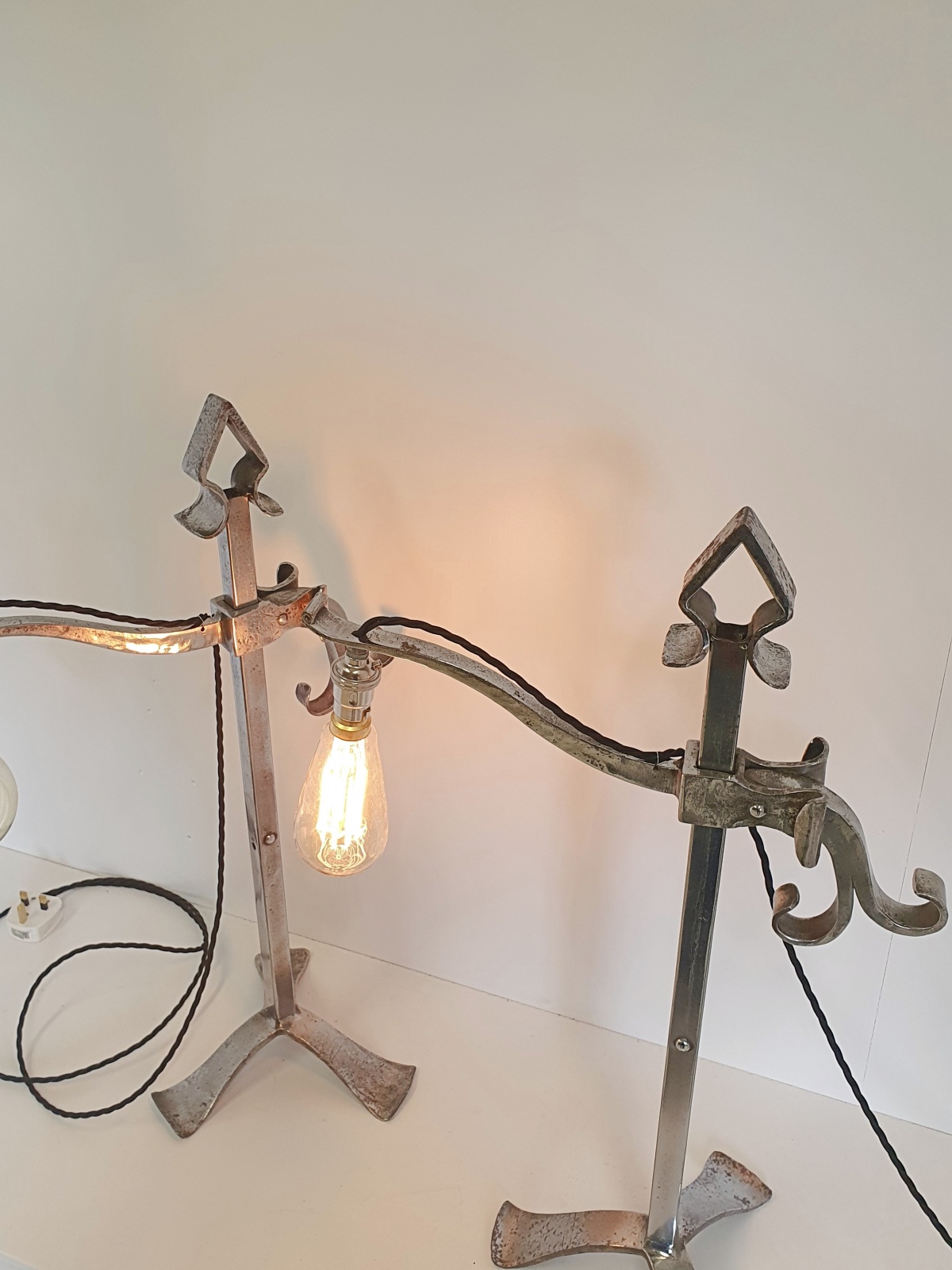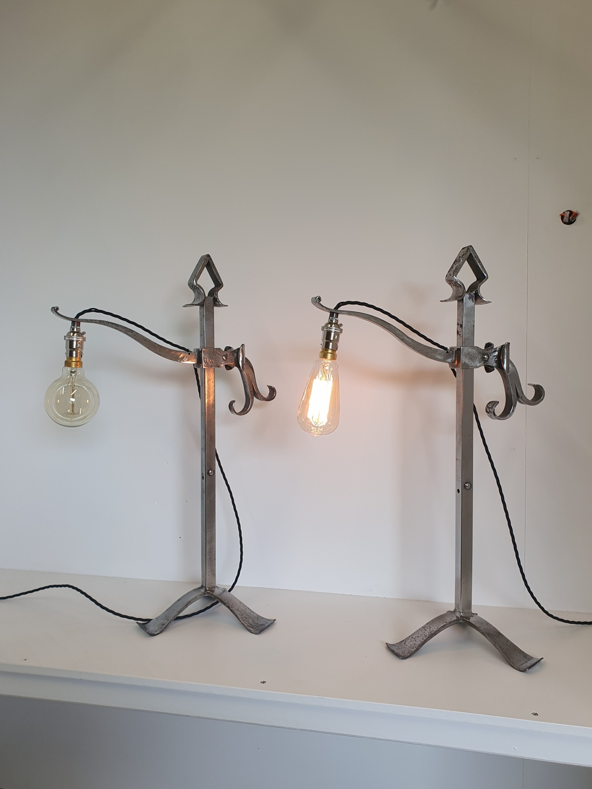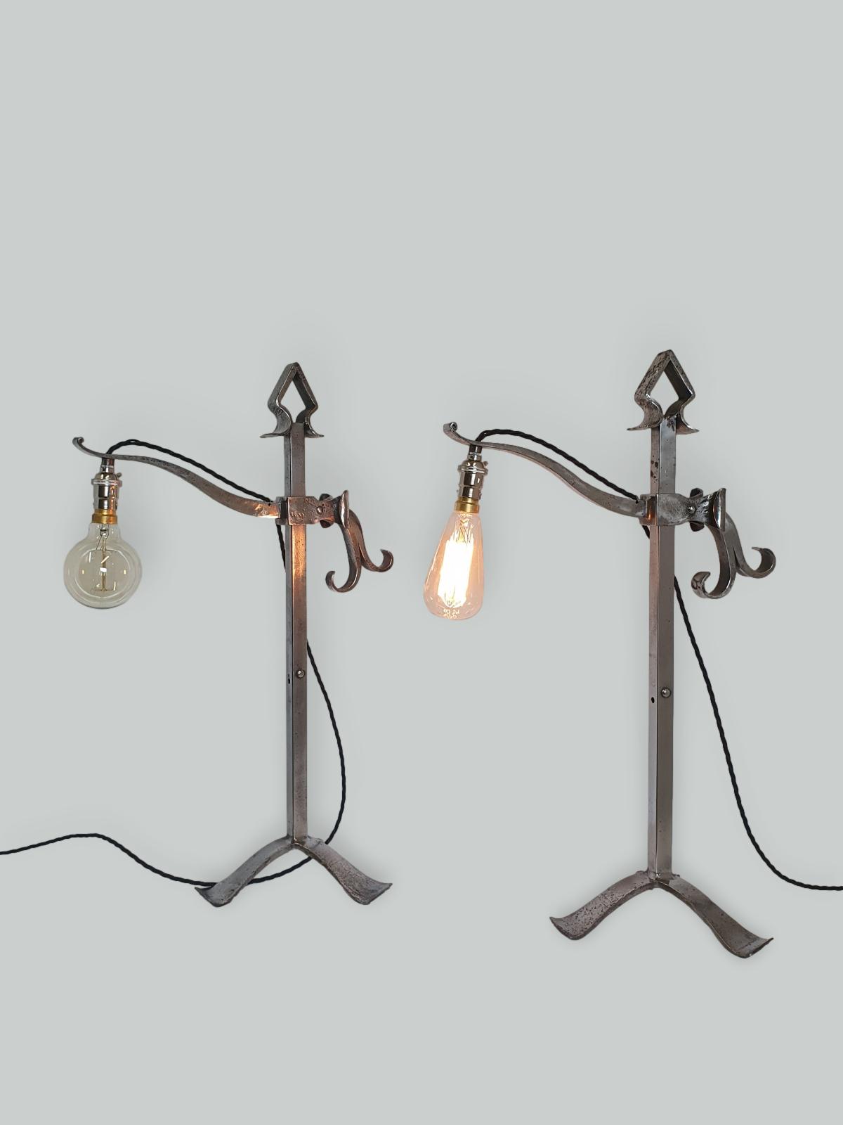 A pair of rare “industrial” style wrought-iron “pump” desk lamps by an unknown designer. England c1910-20
