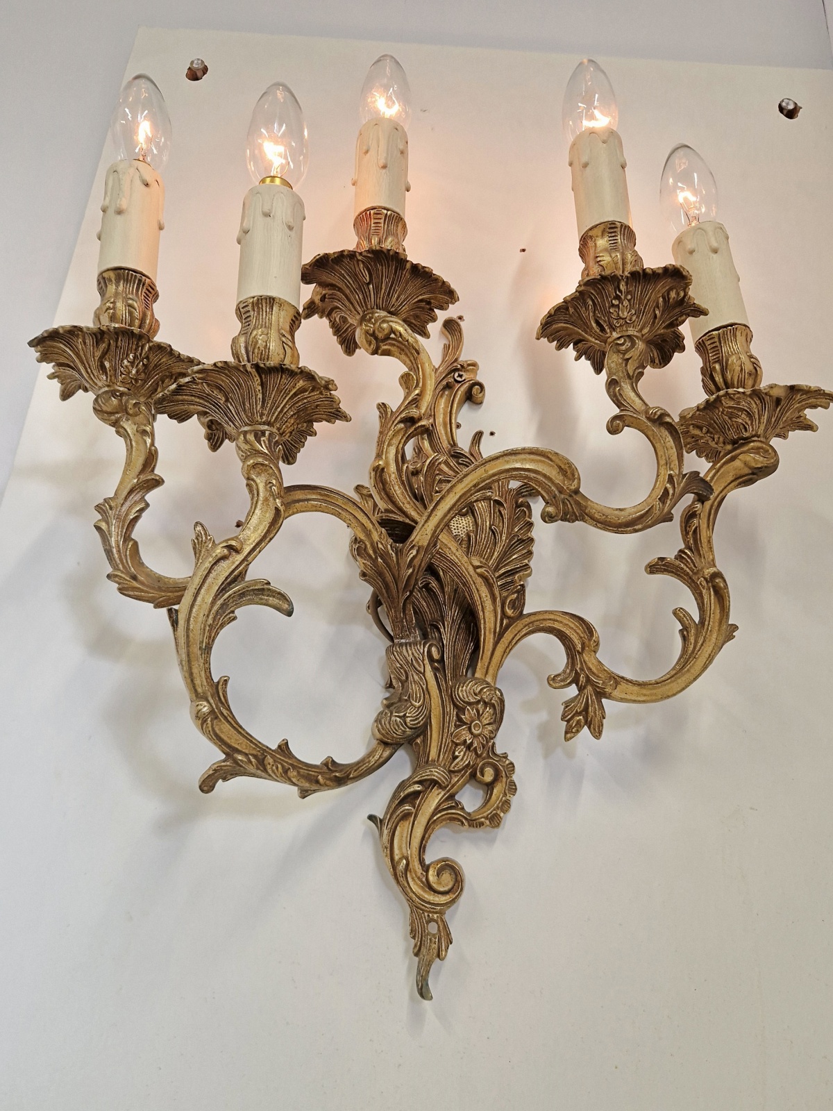 Unsigned | 2 Large “Rococo” 5-Light Candle Sconces | France 1st half c.20th