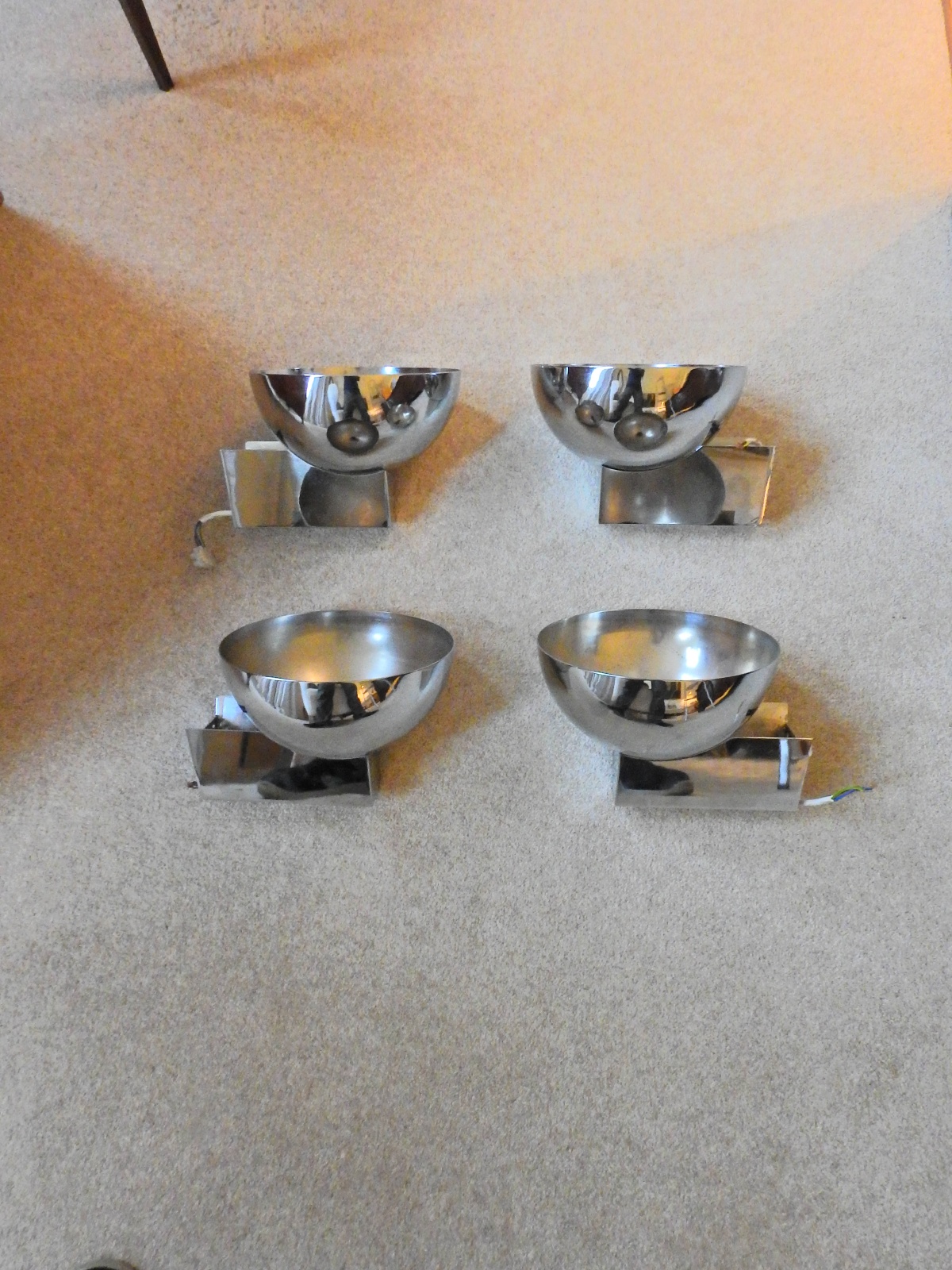 A set of 4 modernist art-deco style chrome uplighters of hemispherical form. England c.1960