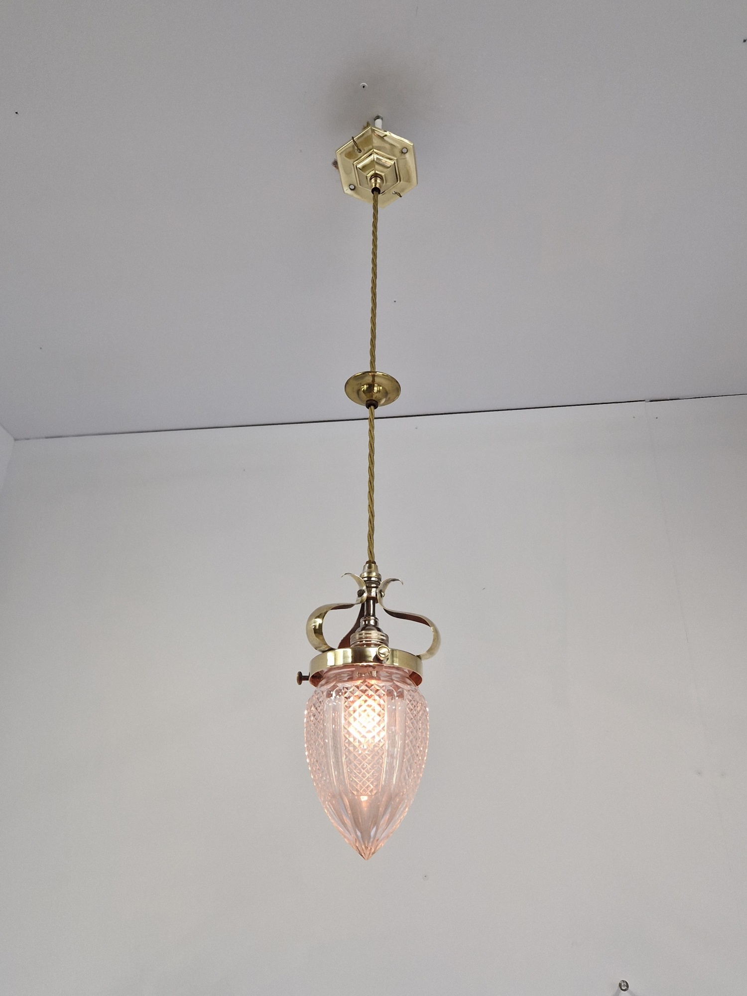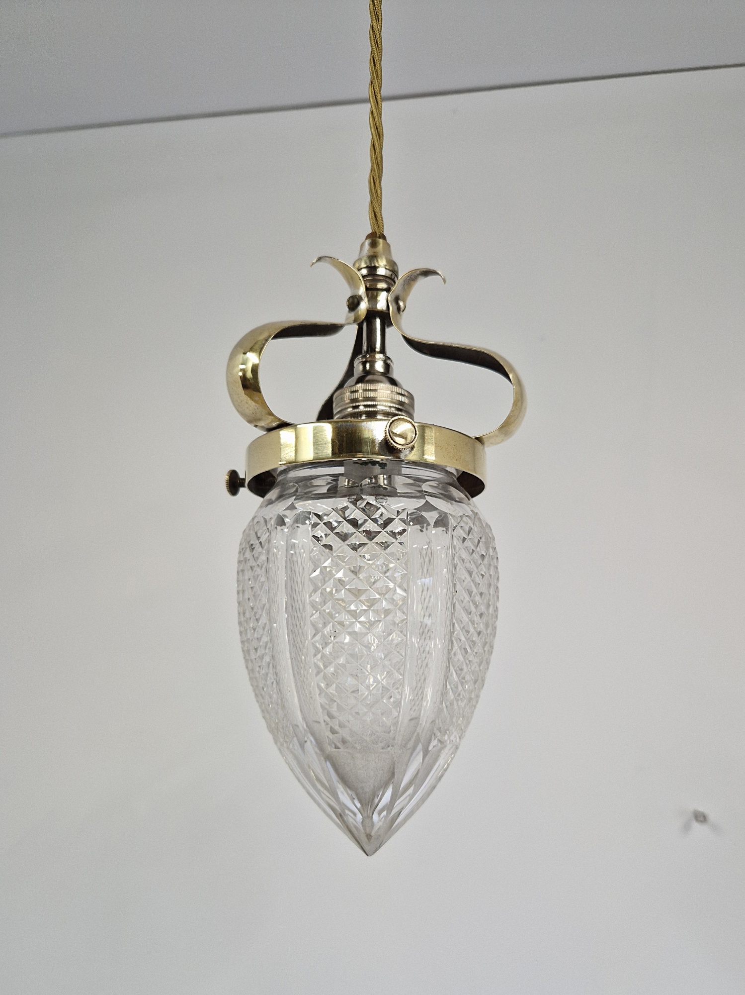 A high quality cut-glass “pineapple” lantern with original period gallery, flex spacer and ceiling rose. England c.1905