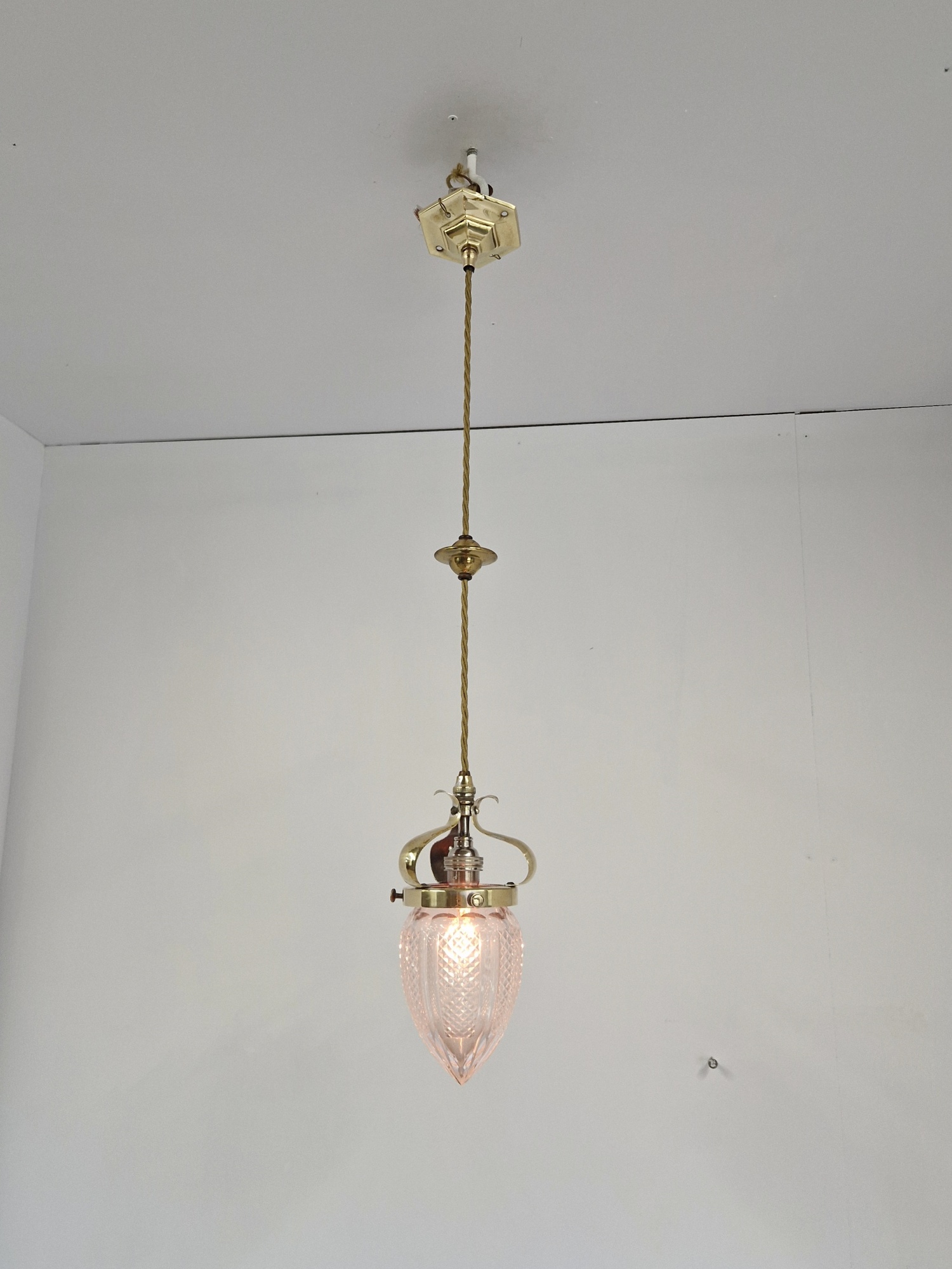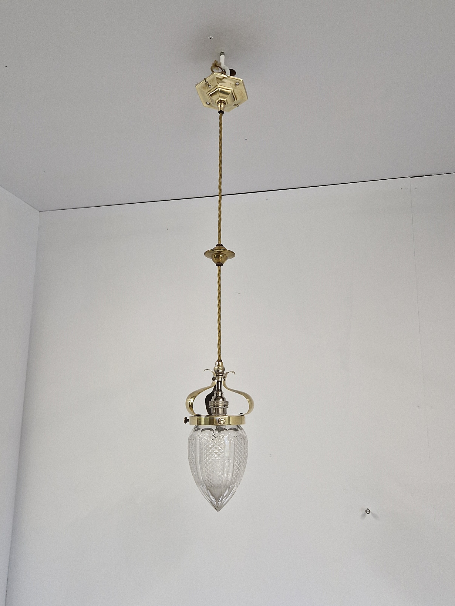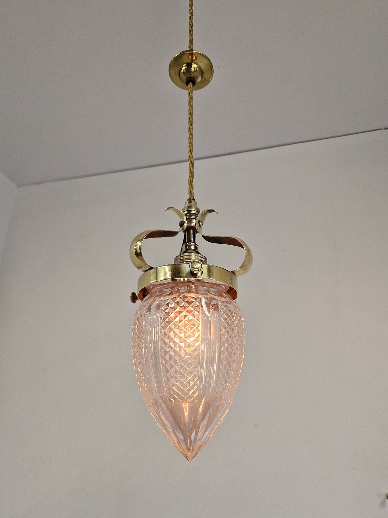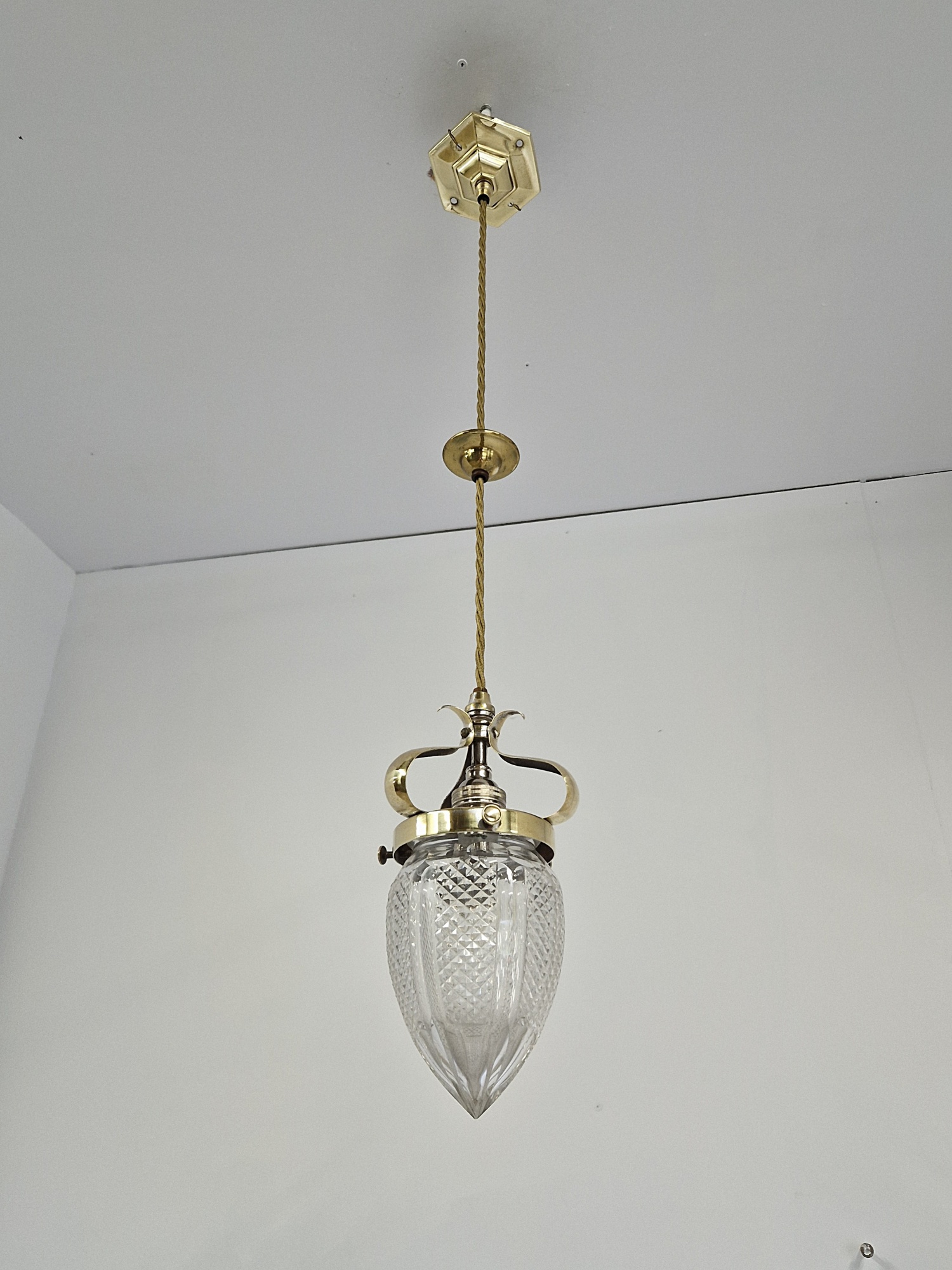 A high quality cut-glass “pineapple” lantern with original period gallery, flex spacer and ceiling rose. England c.1905