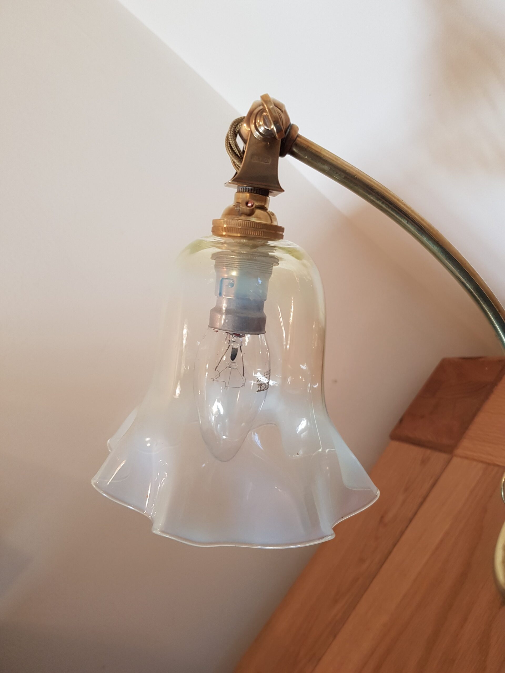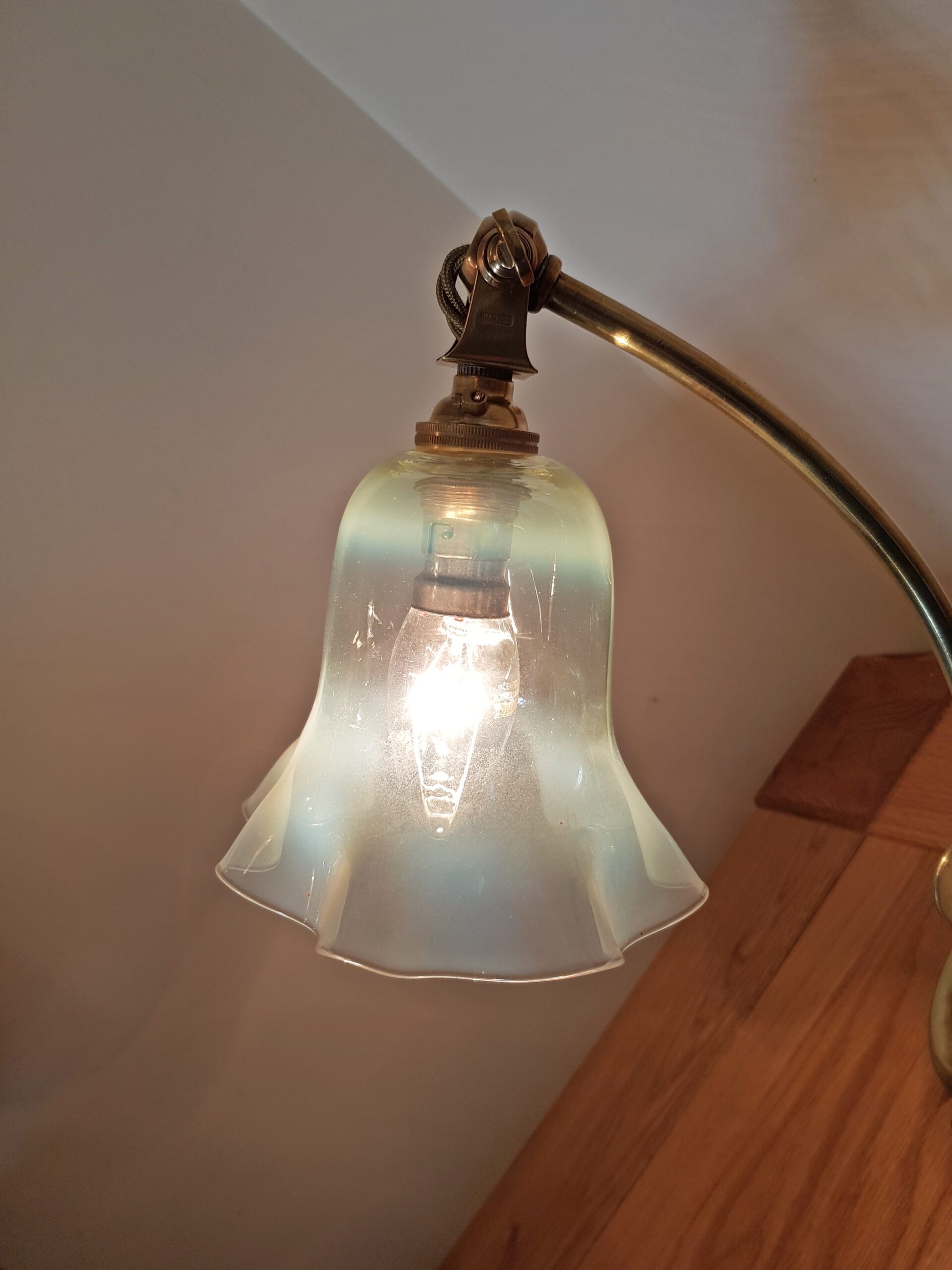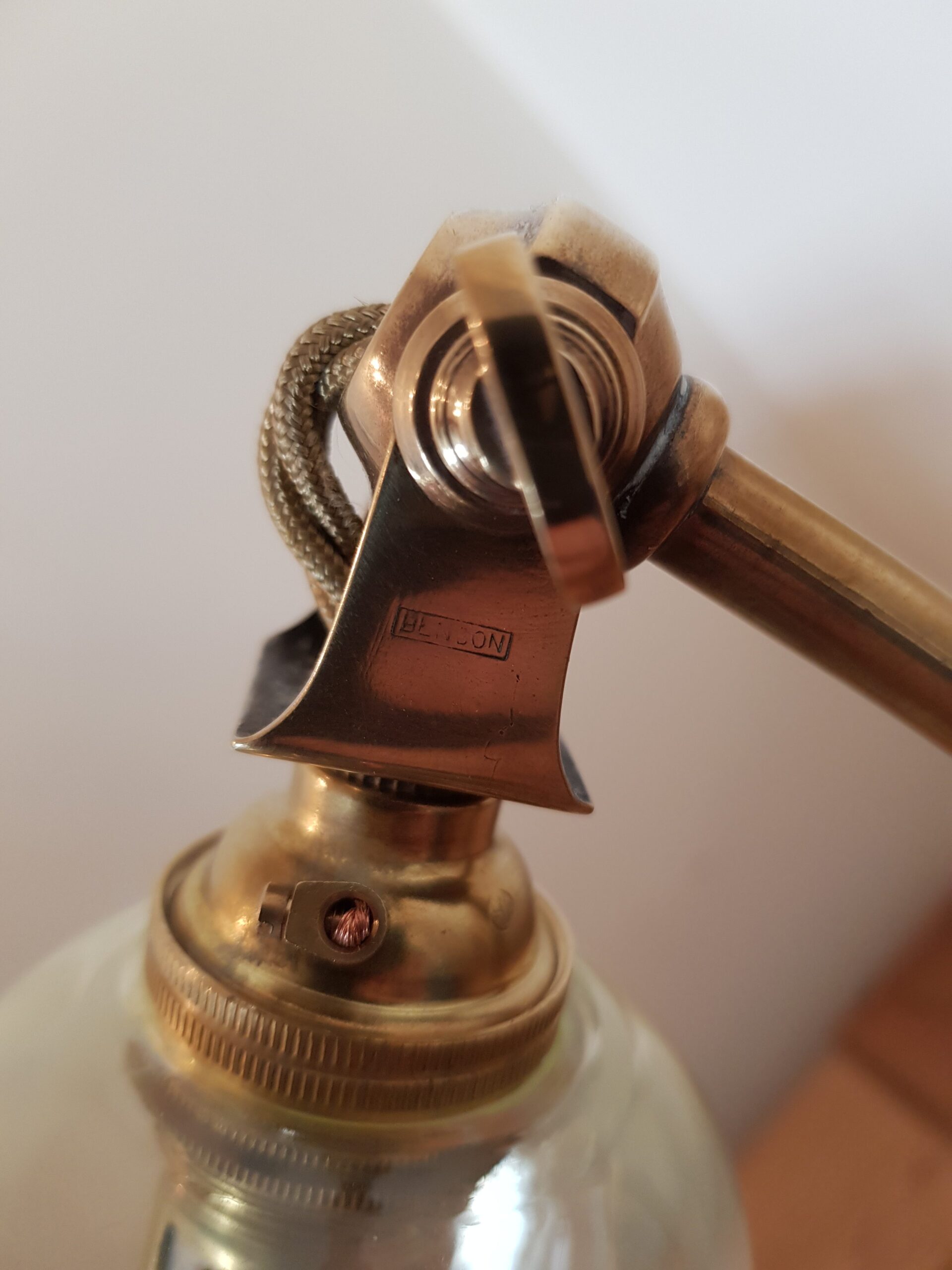 Benson often, but not exclusively, used James Powell & Sons of Whitefriars to supply the glass lampshades for his fittings.
