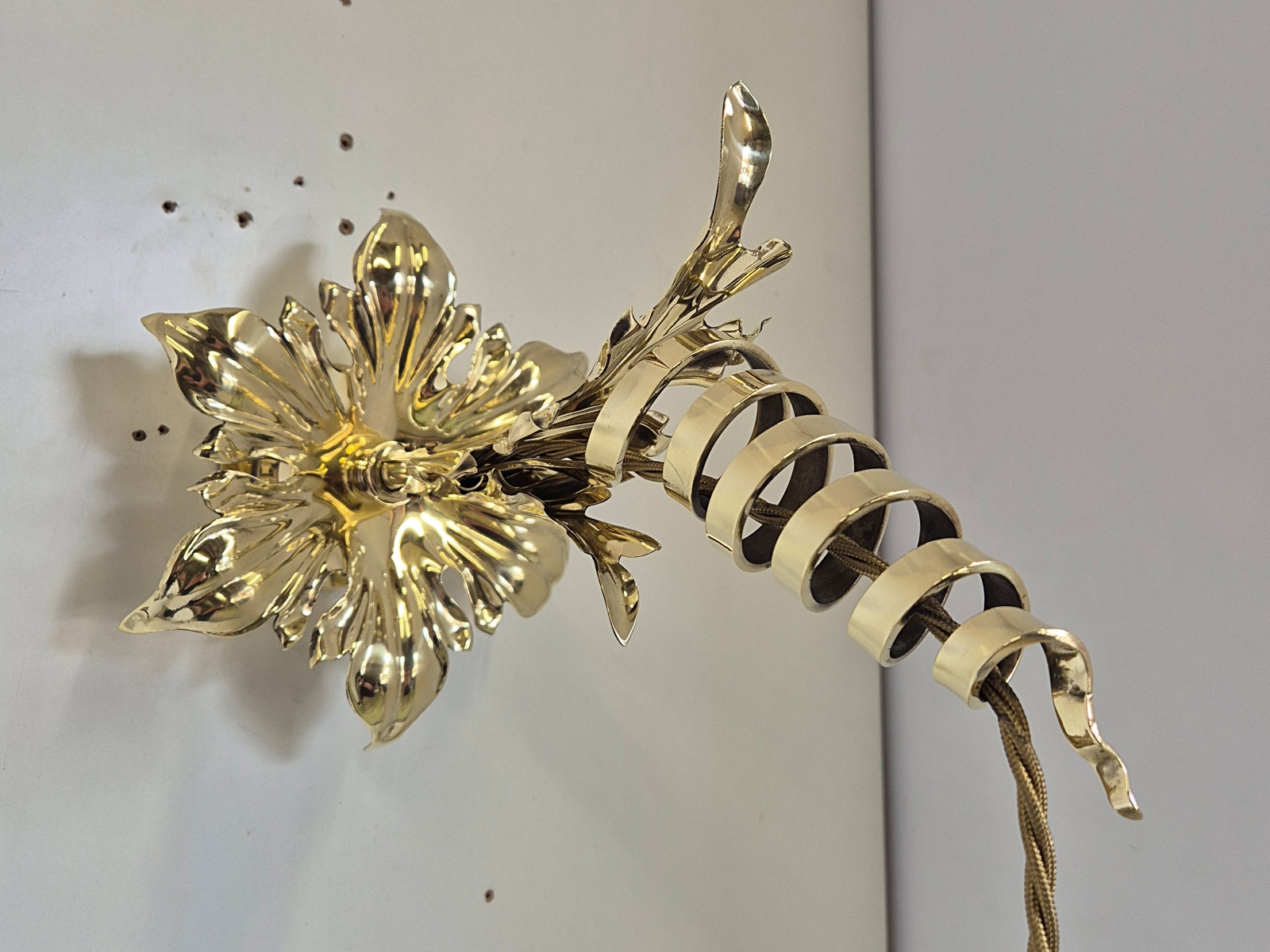 Ht.(overall)41cm/16in, Dpth(overall)34/13.5, Dpth.(bracket)29/11.5, Diam.(rear fixing back-plate)8.5/3.25, W.(floral back-plate)16.5/6.5